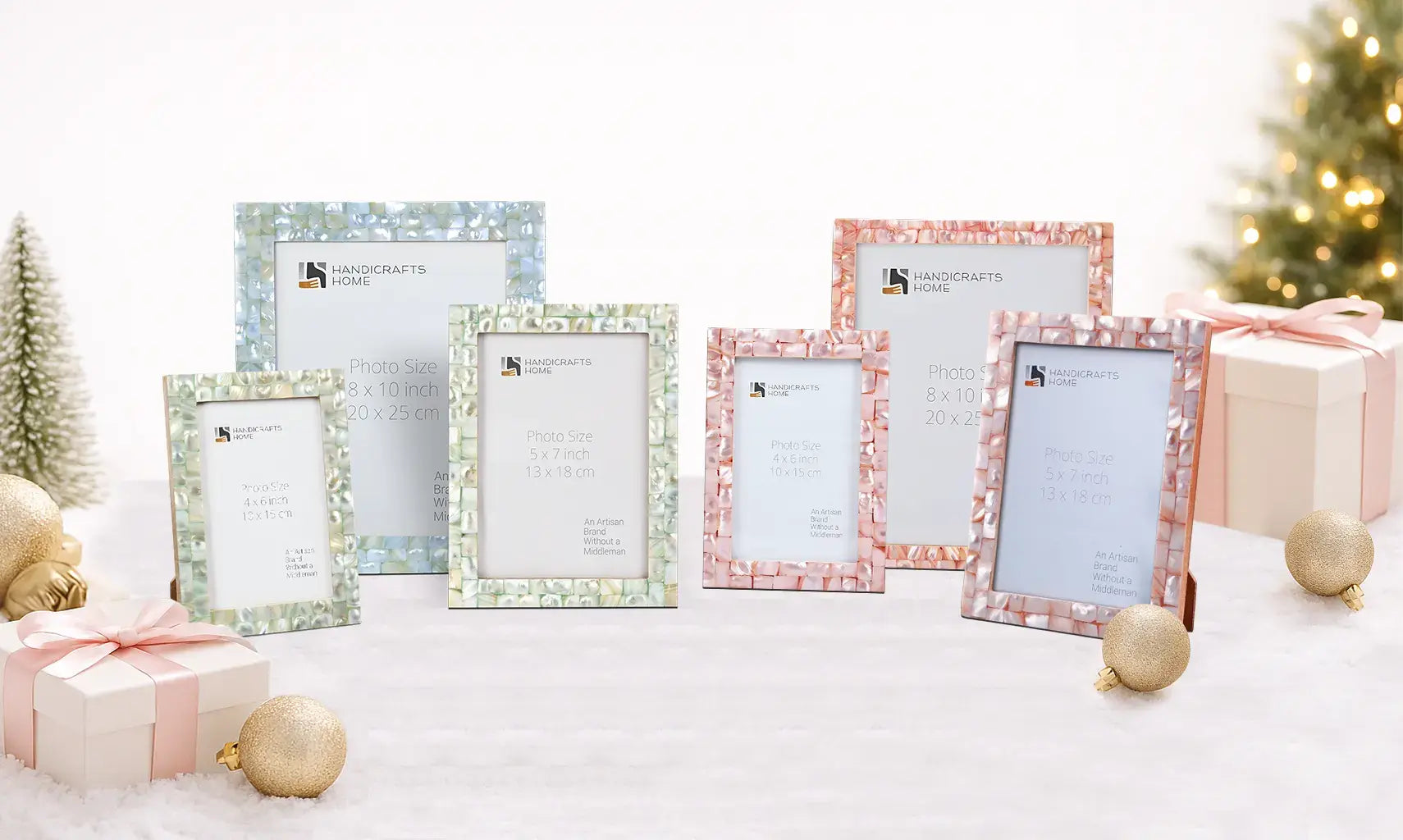Enhance your holiday decor with our Royal White Bone Inlay Picture Frames, perfect for displaying Christmas memories or gifting. These handcrafted frames suit boho, modern, and farmhouse aesthetics in living...