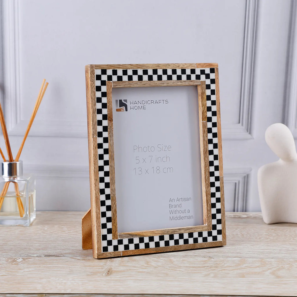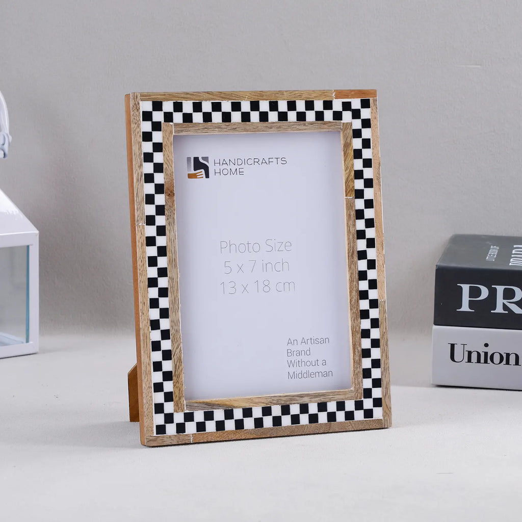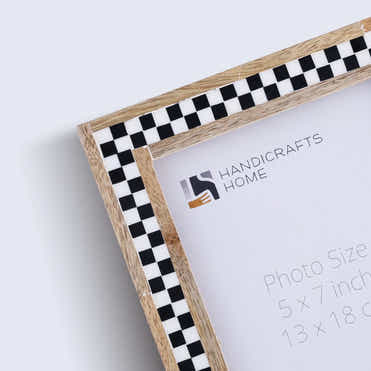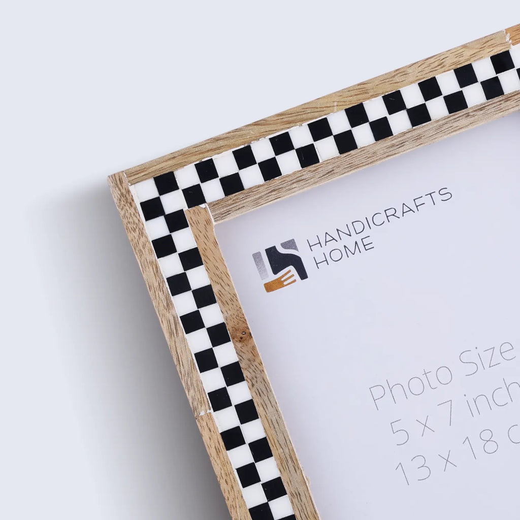 Add timeless style with this handcrafted black & white picture frame by Handicrafts Home. Designed in a bold Chessboard pattern with bone, wood, and pine MDF.