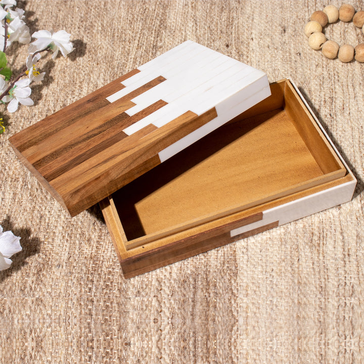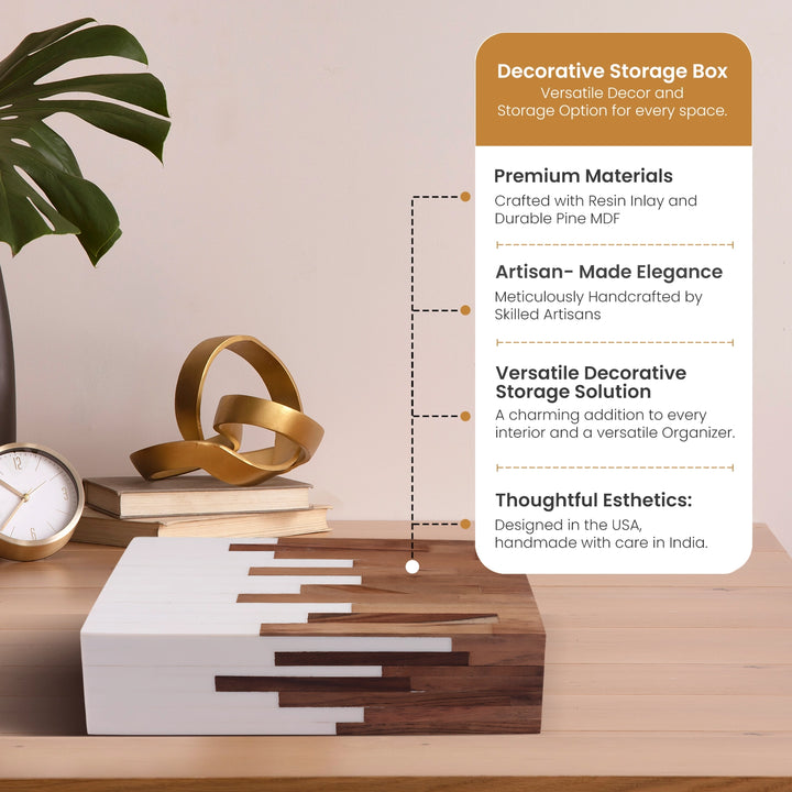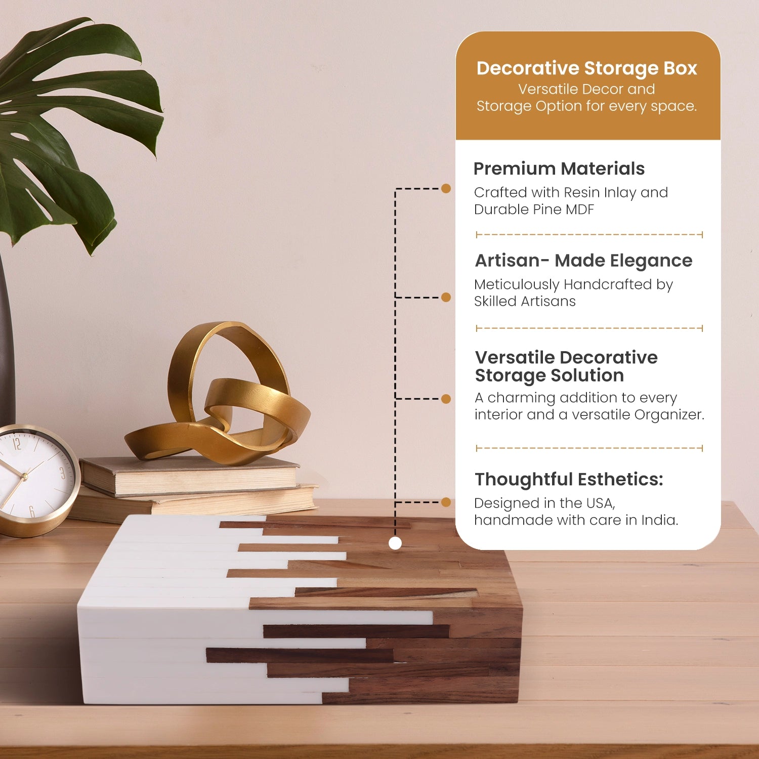 Decorative Storage Box Equalizer Wood & Resin Inlay in 3 Sizes, Brown White