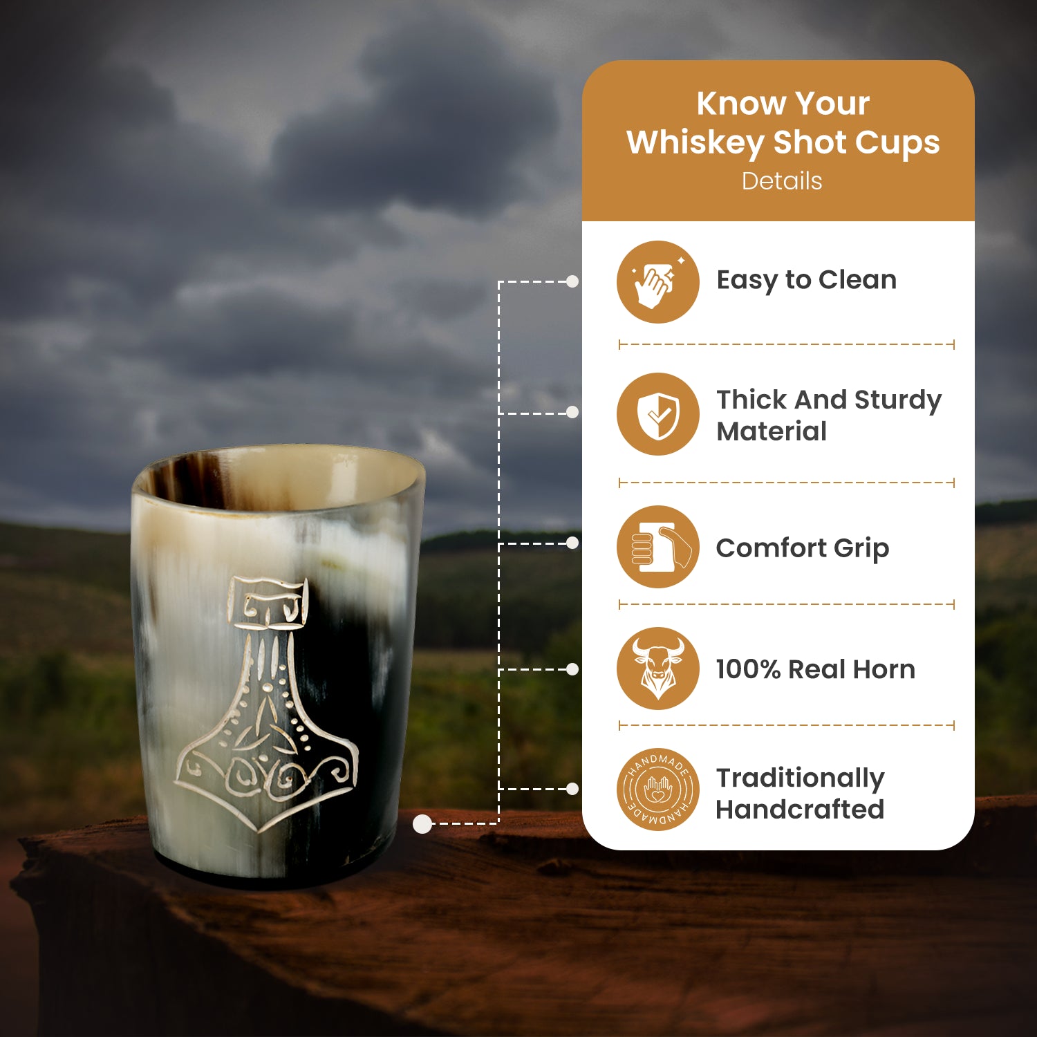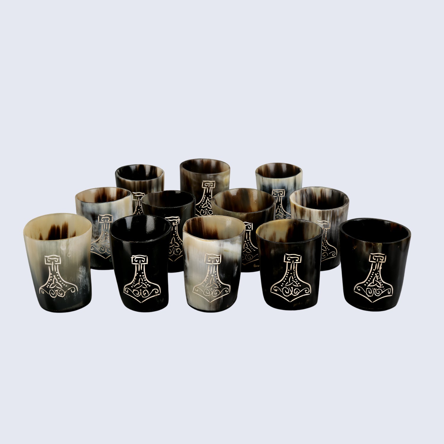Horn Whiskey Shot Glasses Pack (4,8 & 12) – Hold Up to 6.5oz, Nordic Hammer