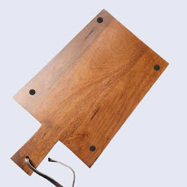 Skillfully crafted from sustainably sourced hardwood, this 0.5-inch-thick board offers excellent durability and resistance to knife wear. The angular trapezoid handle not only enhances grip but adds a modern rustic edge to your kitchen collection. Each piece features unique wood grain patterns and a smooth natural finish for both beauty and strength.