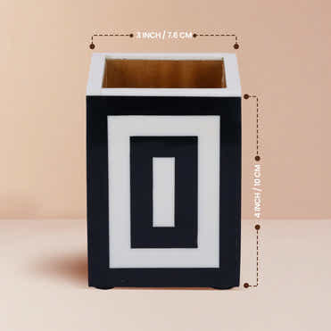 Stylish Black & White Concentric Design: A beautifully handcrafted pencil holder featuring a timeless concentric pattern. Adds sophistication to home offices, vanities, classrooms, and corporate desks.