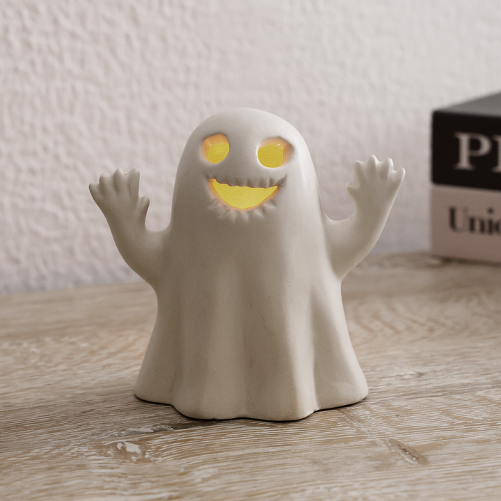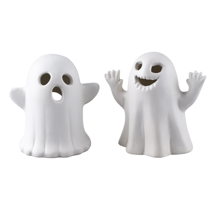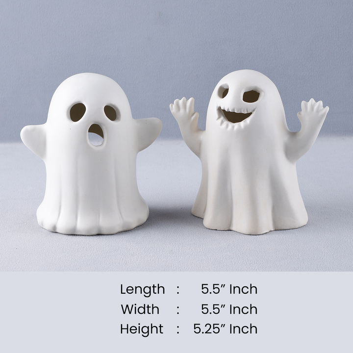 Halloween Tabletop Decor – Set of 2 Cute Ceramic Ghost Figurines