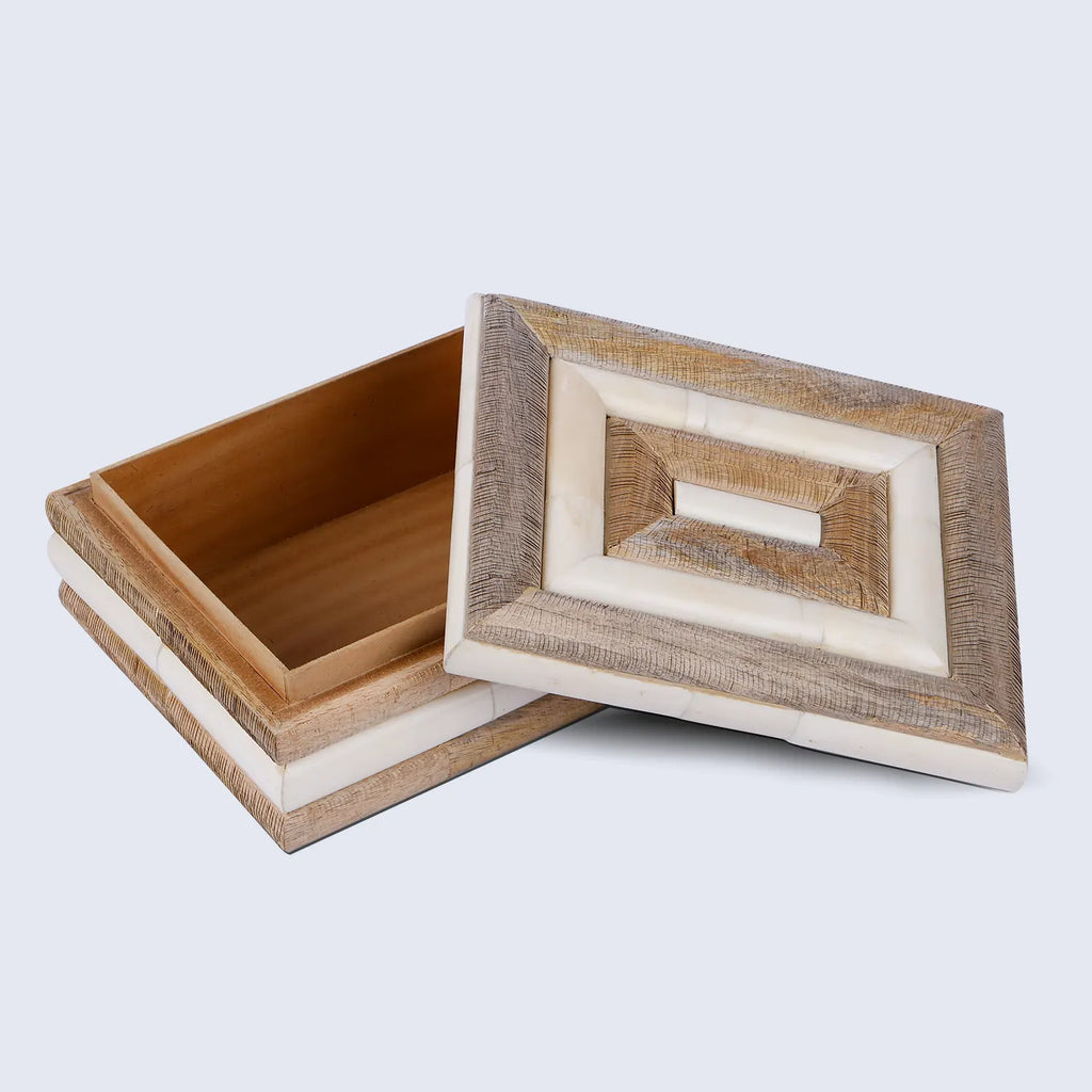 Transform your home with this artisan-crafted Drancy Ribbed pattern Bone Inlay & Wood Storage Box — a unique decorative storage solution blending modern elegance with traditional craftsmanship.