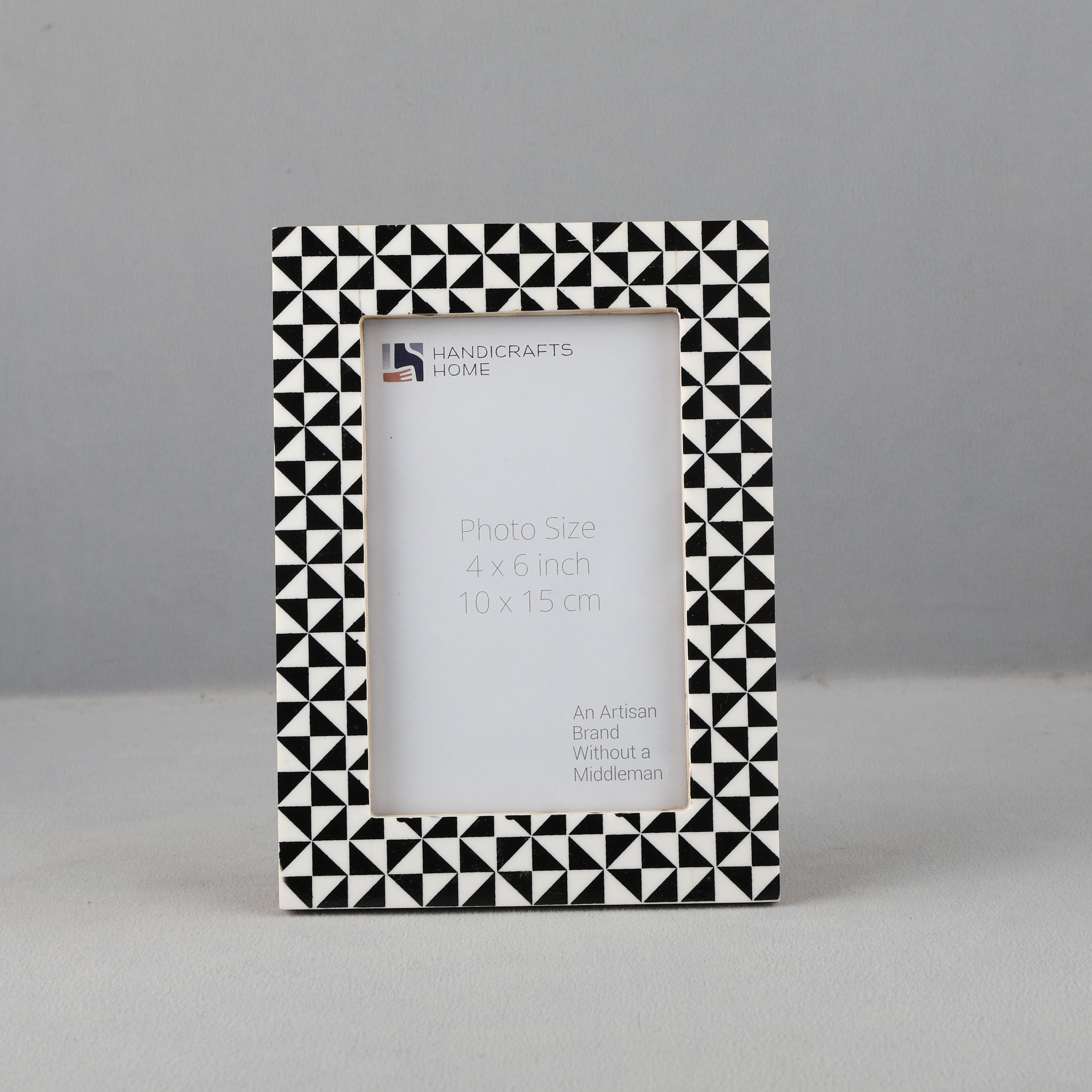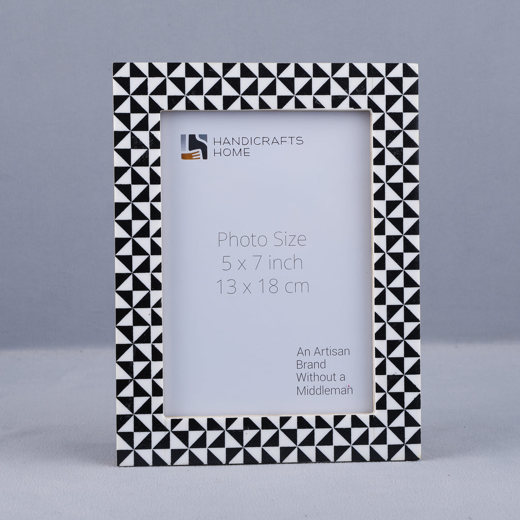 Introducing the Black and White Prism photo frame from Handicrafts Home, designed to showcase your memories with elegance. Handcrafted from resin inlay and pine MDF, it blends seamlessly with modern and farmhouse decor.
