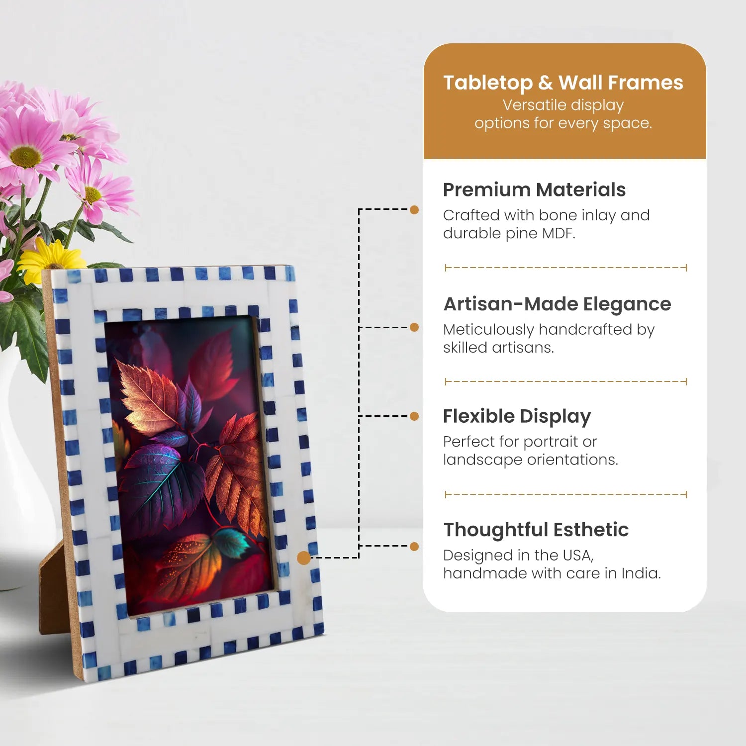 Handmade Bone Inlay Blue Picture Frame - Checkered Pattern in 4x6 & 5x7