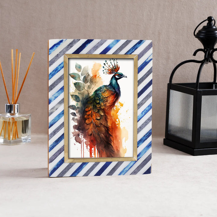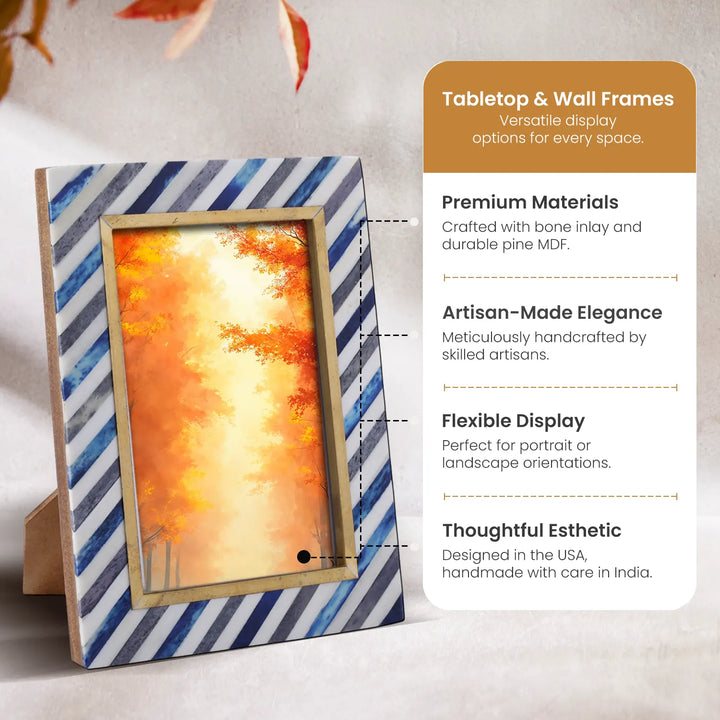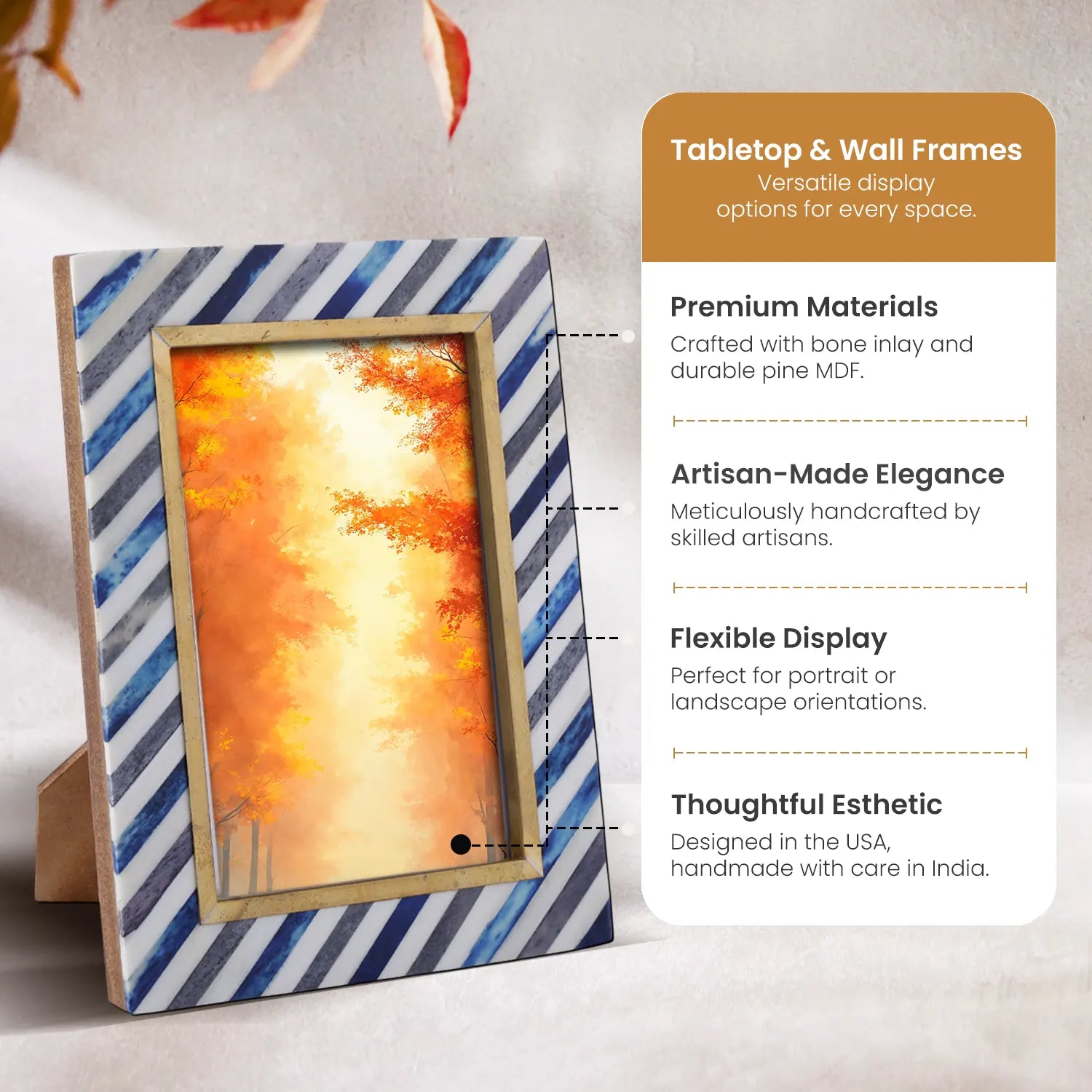 Handmade Bone Inlay, Brass & Wood Picture Frame - 4x6 & 5x7