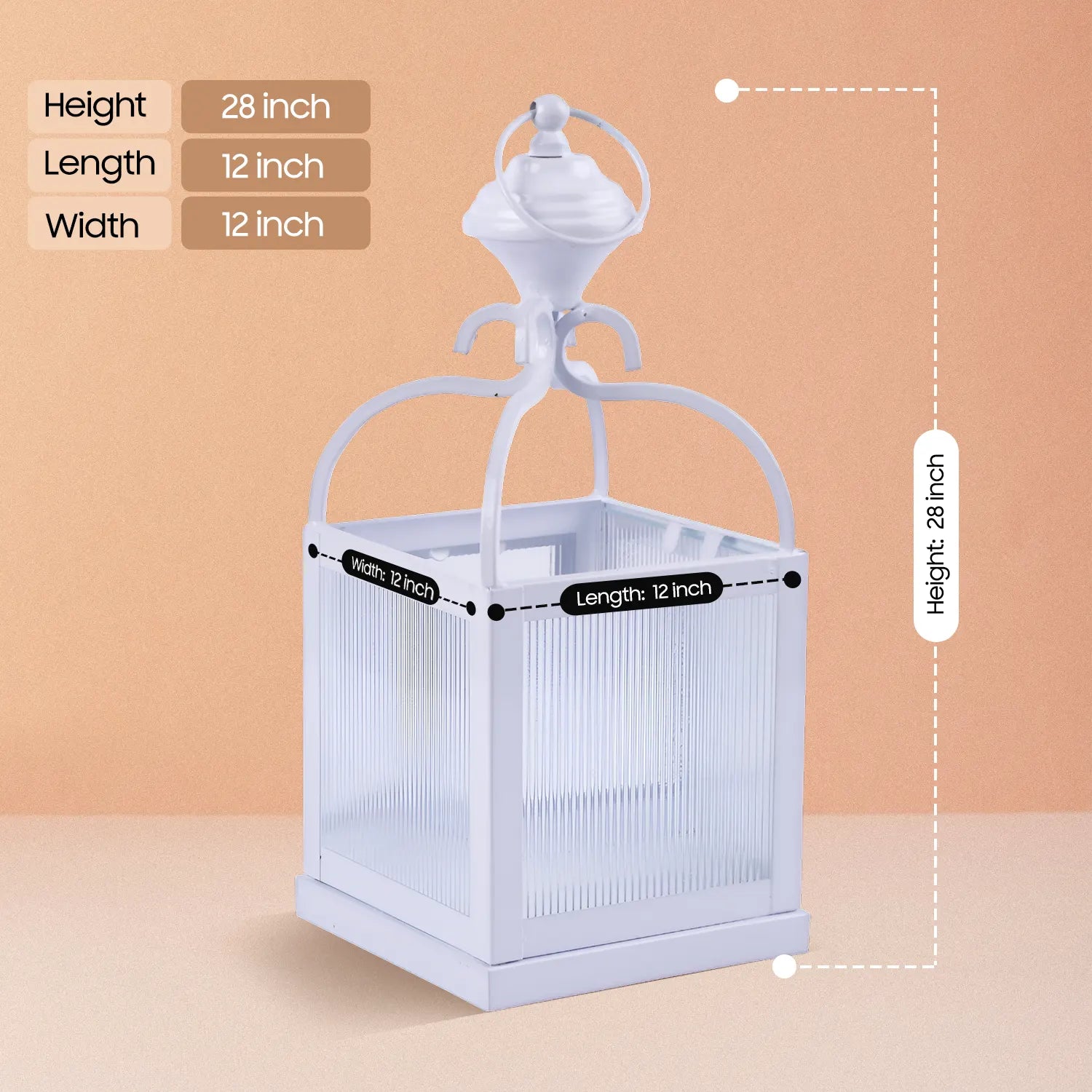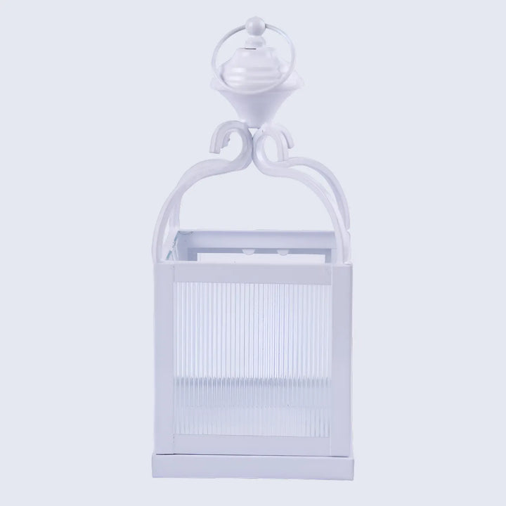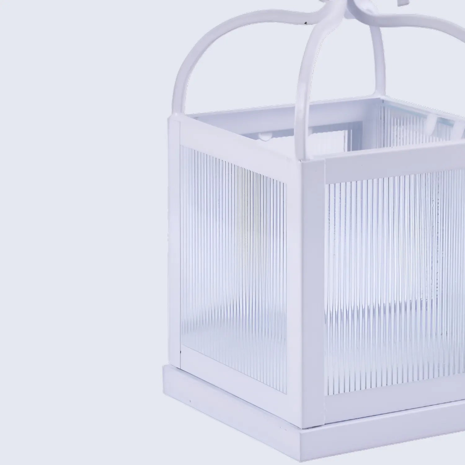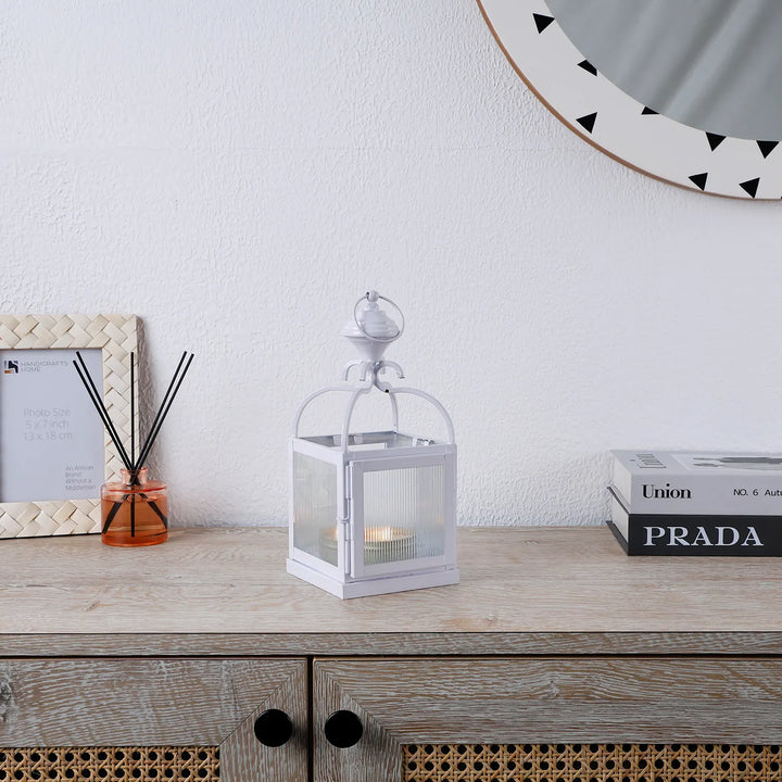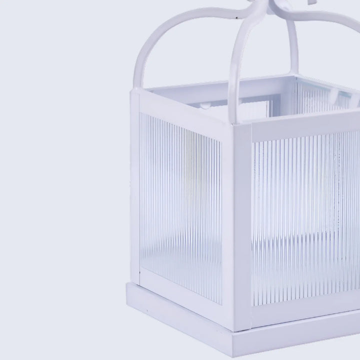 Metal & Ribbed Glass Dome Lantern, Antique White