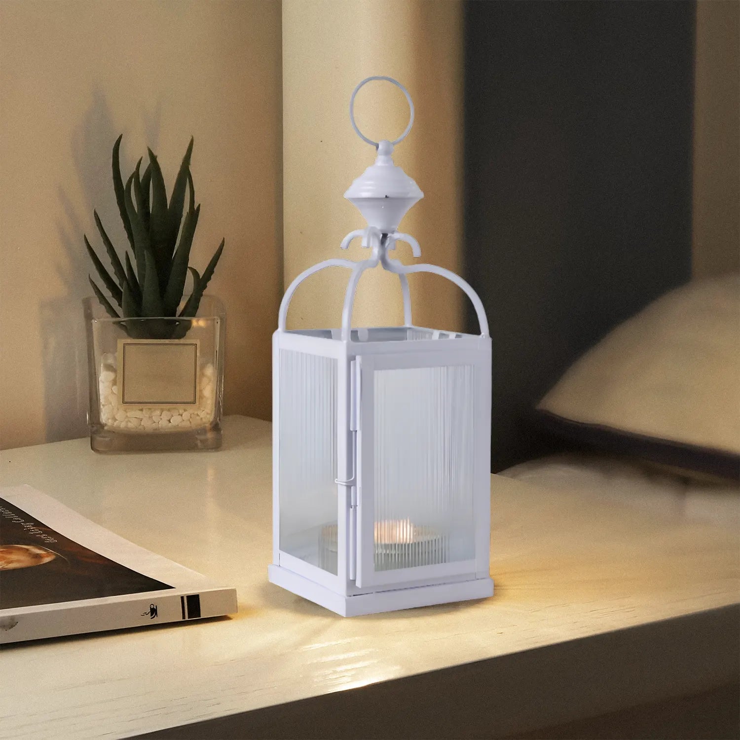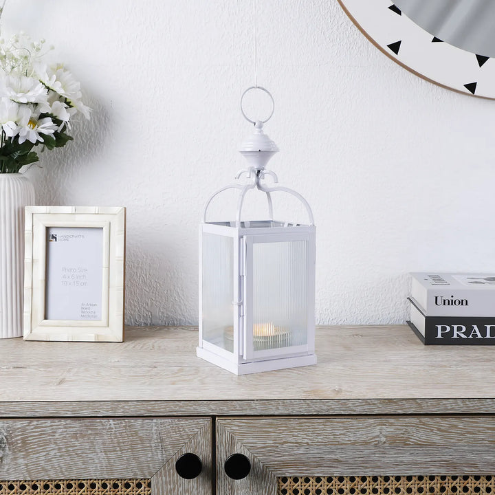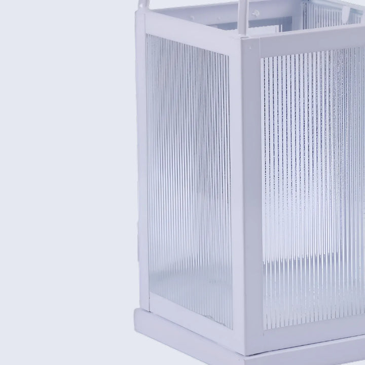Metal & Ribbed Glass Dome Lantern, Antique White