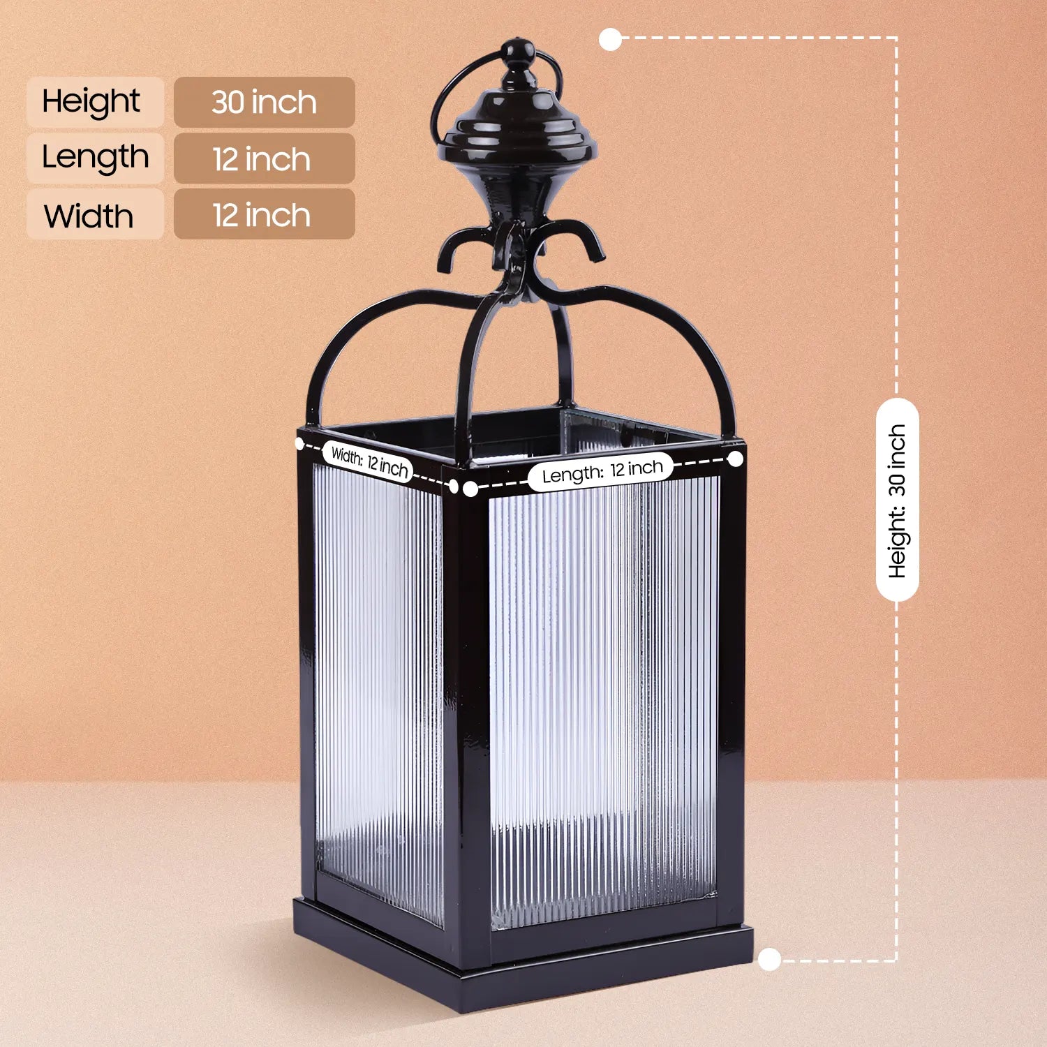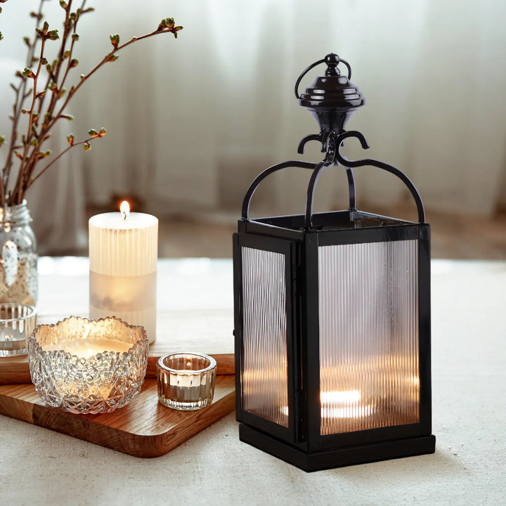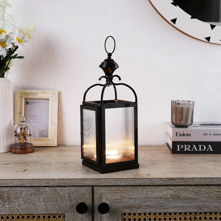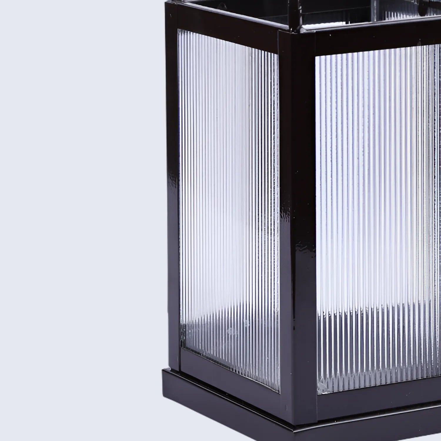 Metal & Ribbed Glass Dome Lantern, Glossy Brown