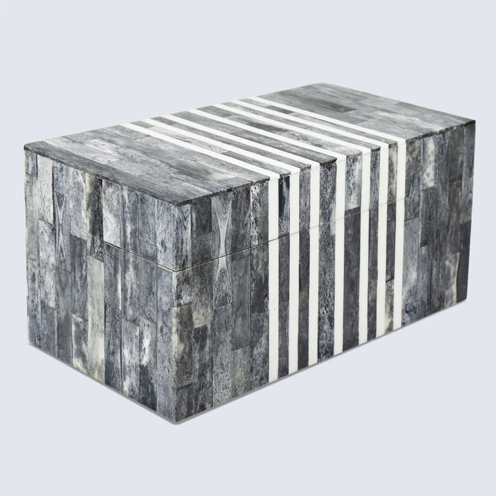 Patisserie Cafe Pattern Decorative Storage Box, Bone & Resin Inlay in 7 Sizes, Grey