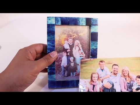 Picture Frames Classic Pattern Bone Inlay Collection in 3 Sizes, Pack of 2 - Blue
