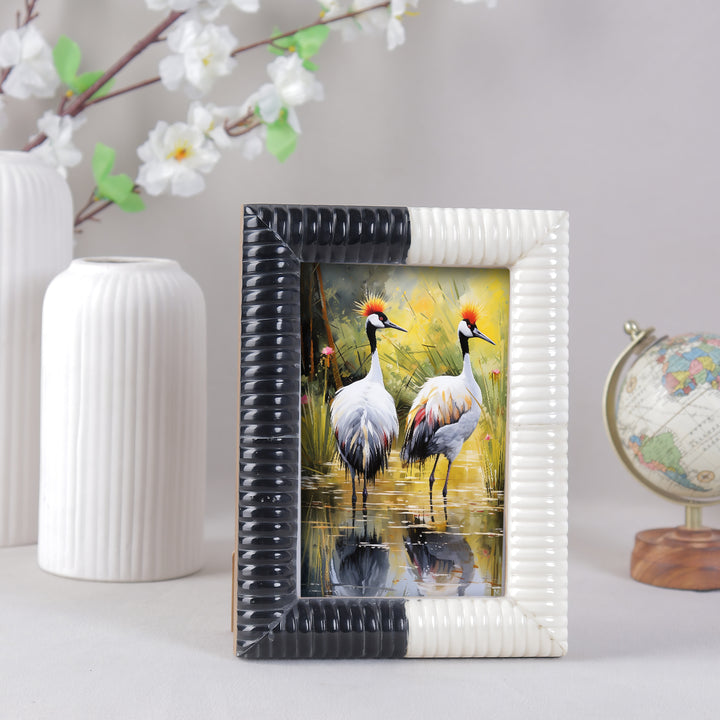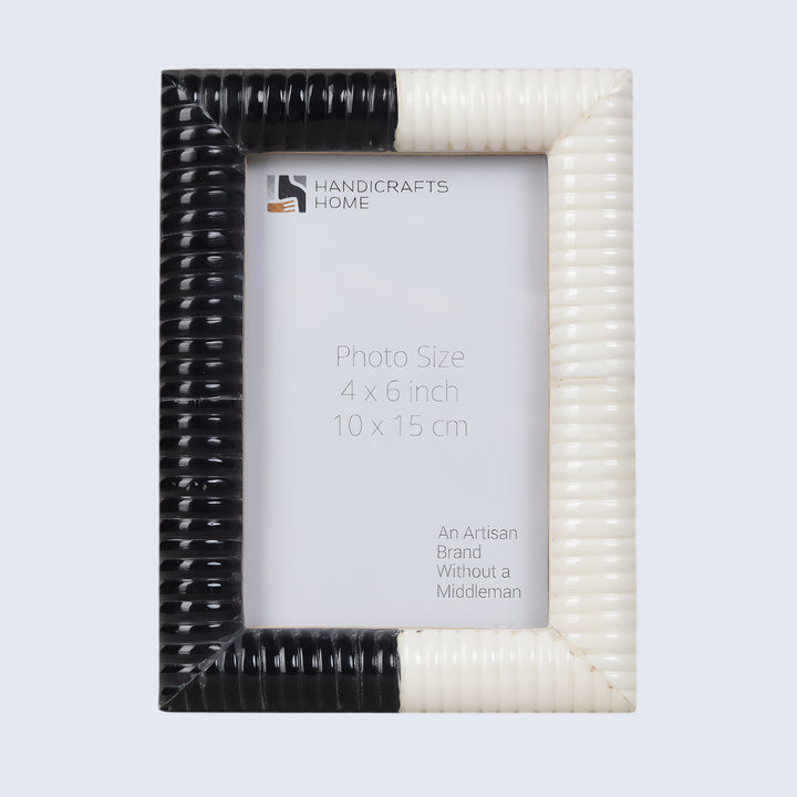 Ridged Black & White Bone & Resin Inlay Picture Frame- 4x6 & 5x7
