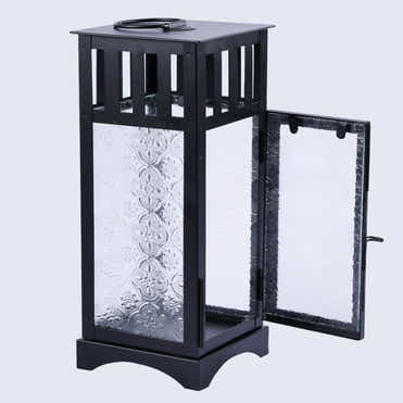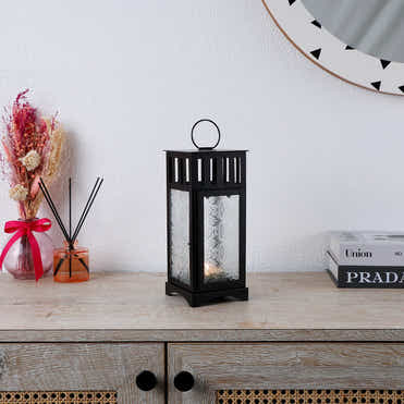 Metal & Embossed Glass Vintage Lantern, Matte Black