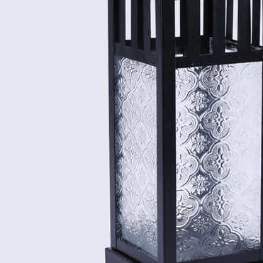 This lantern blends rustic charm with timeless style, featuring embossed glass panels and a vented iron top for authenticity. The embossed texture catches and reflects candlelight beautifully, creating a warm and nostalgic glow. Arched legs and antique finishes enhance its handcrafted look, making it a great choice for rustic, bohemian, or vintage-inspired decor.