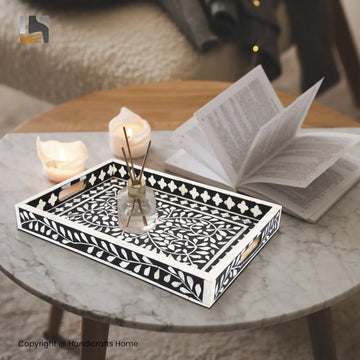 Decorative Tray Alhambra Negra Pattern Bone & Resin Inlay Collection in 2 Sizes