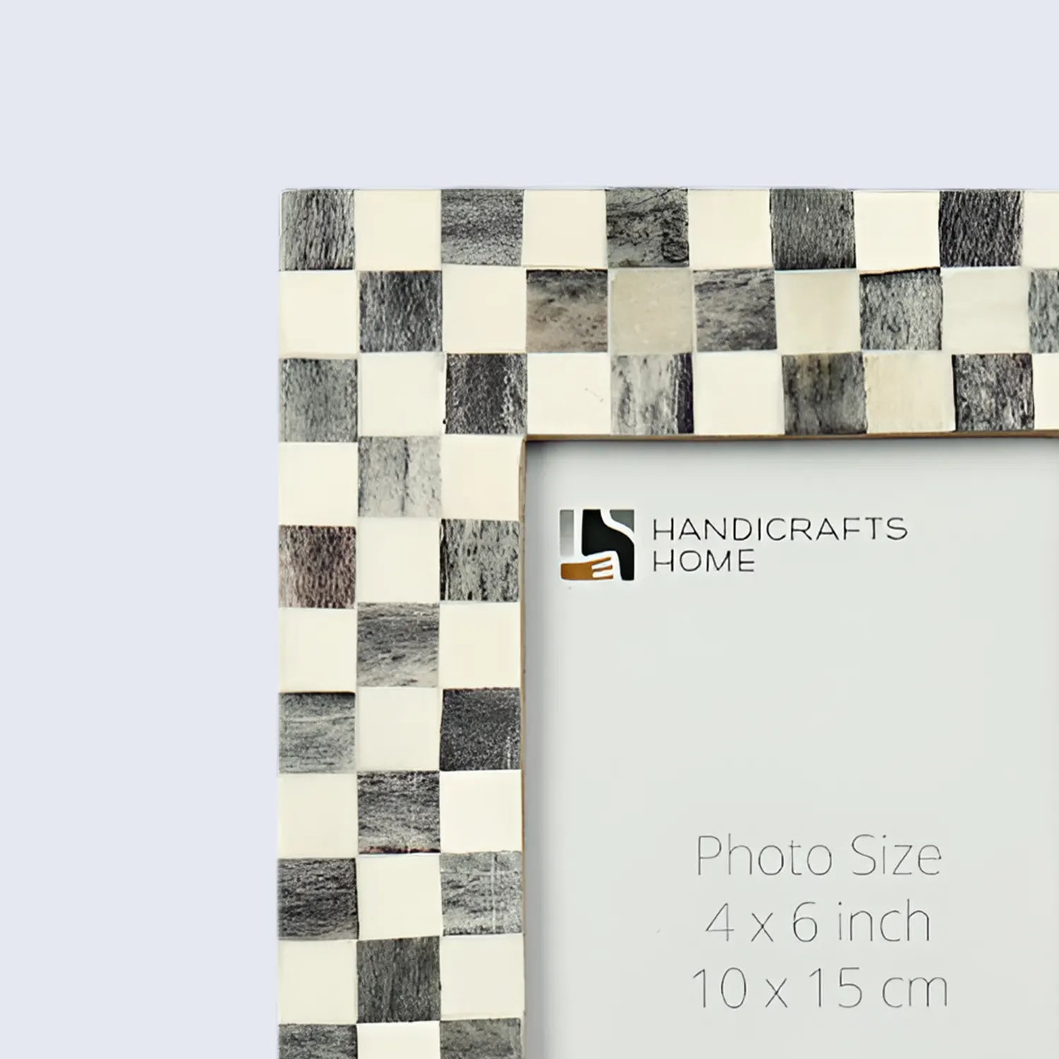 Picture Frame Checked Pattern inspired Bone Inlay, Grey & White - 4x6 & 5x7
