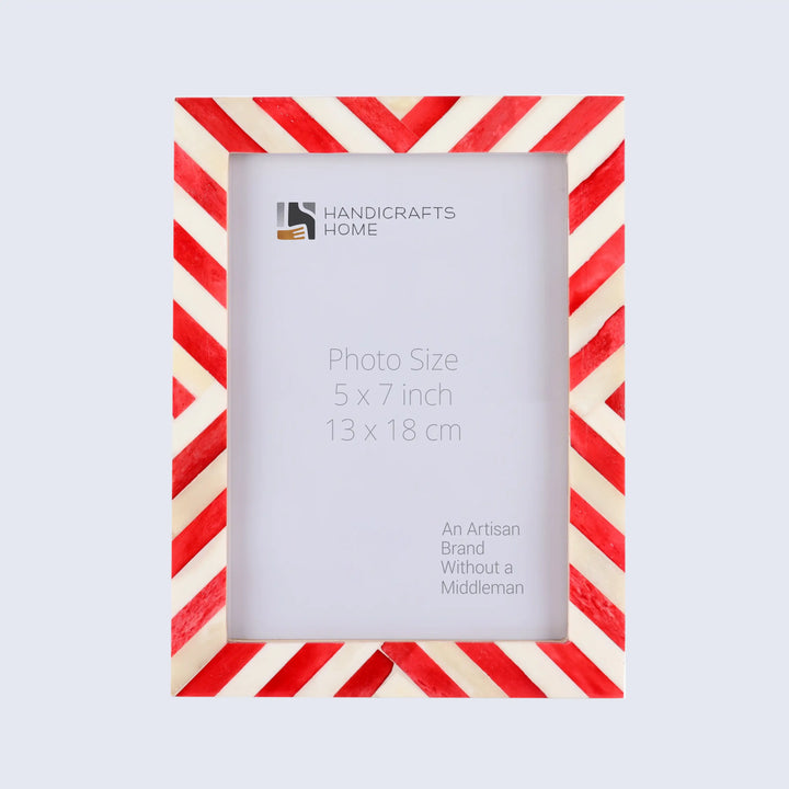 Picture Frames Chevron Pattern Bone Inlay Collection in 4 Sizes, Red