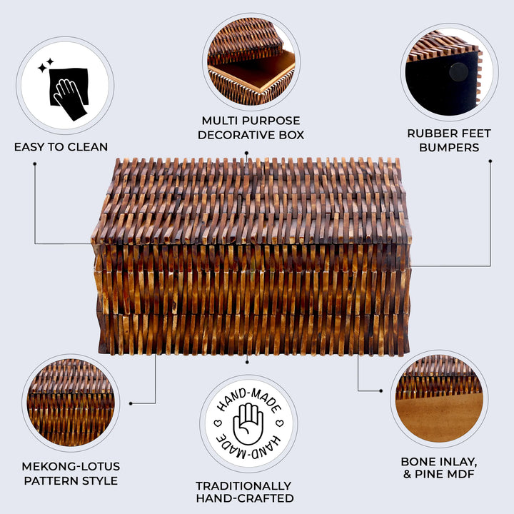 Decorative Storage Box Mekong Lotus Bone Inlay & Brass in 2 Sizes