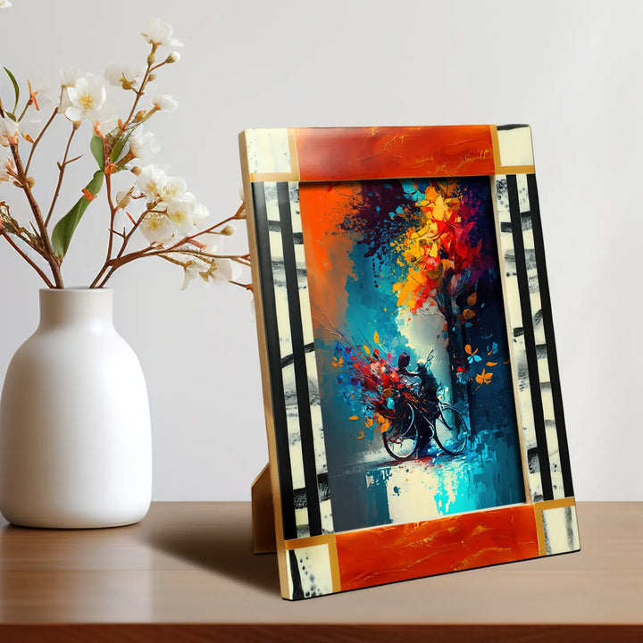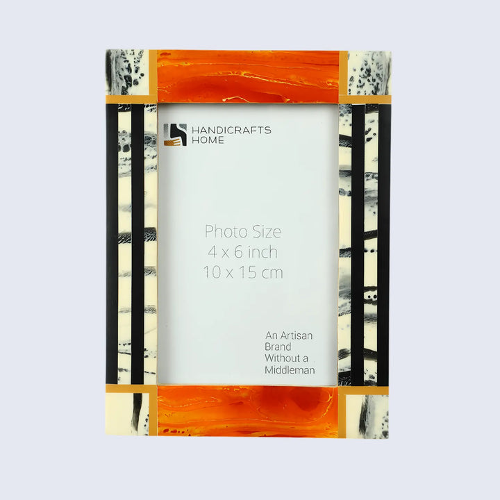 Orange Abstract Ink Resin Inlay Picture Frame in 4x6 & 5x7