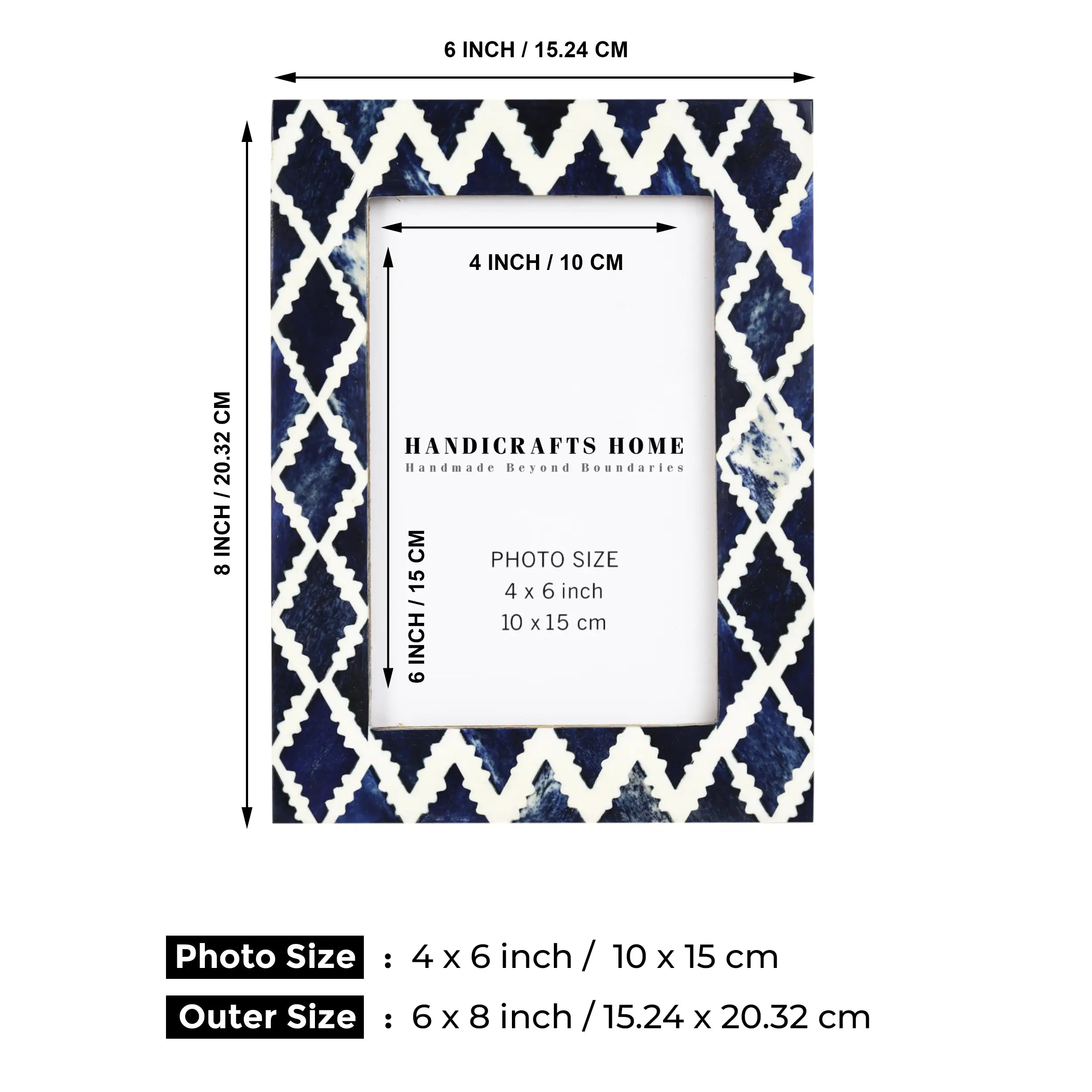 Picture Frames Indigo Mosaic Diamond Pattern Bone & Resin Inlay Collection, 4X6