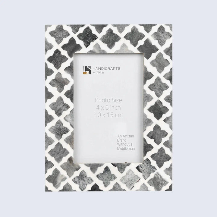 Picture Frames Mosaic Quatrefoil Pattern Bone & Resin Inlay Collection in 3 colors, 4x6