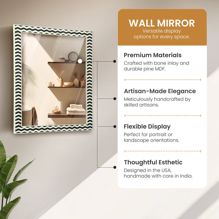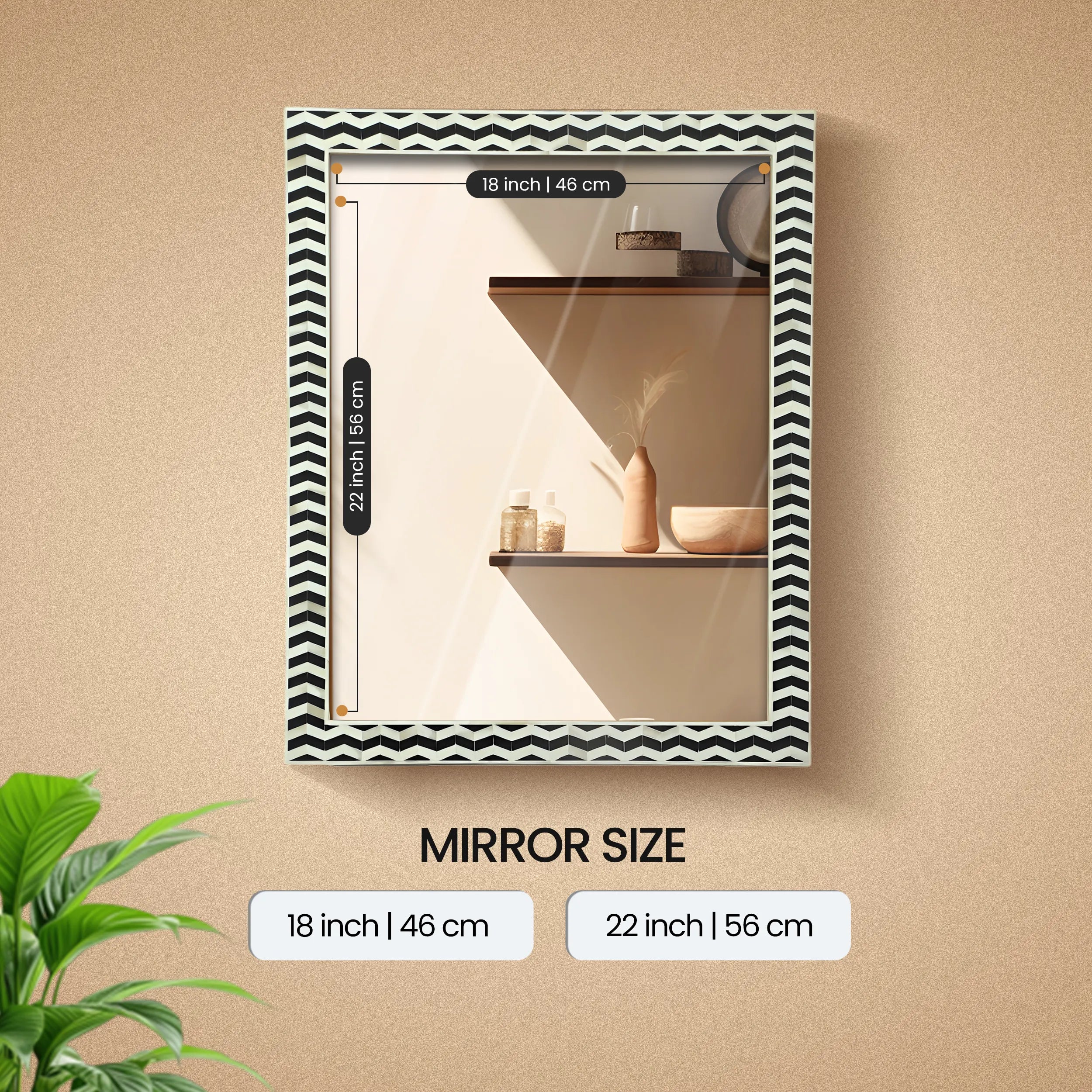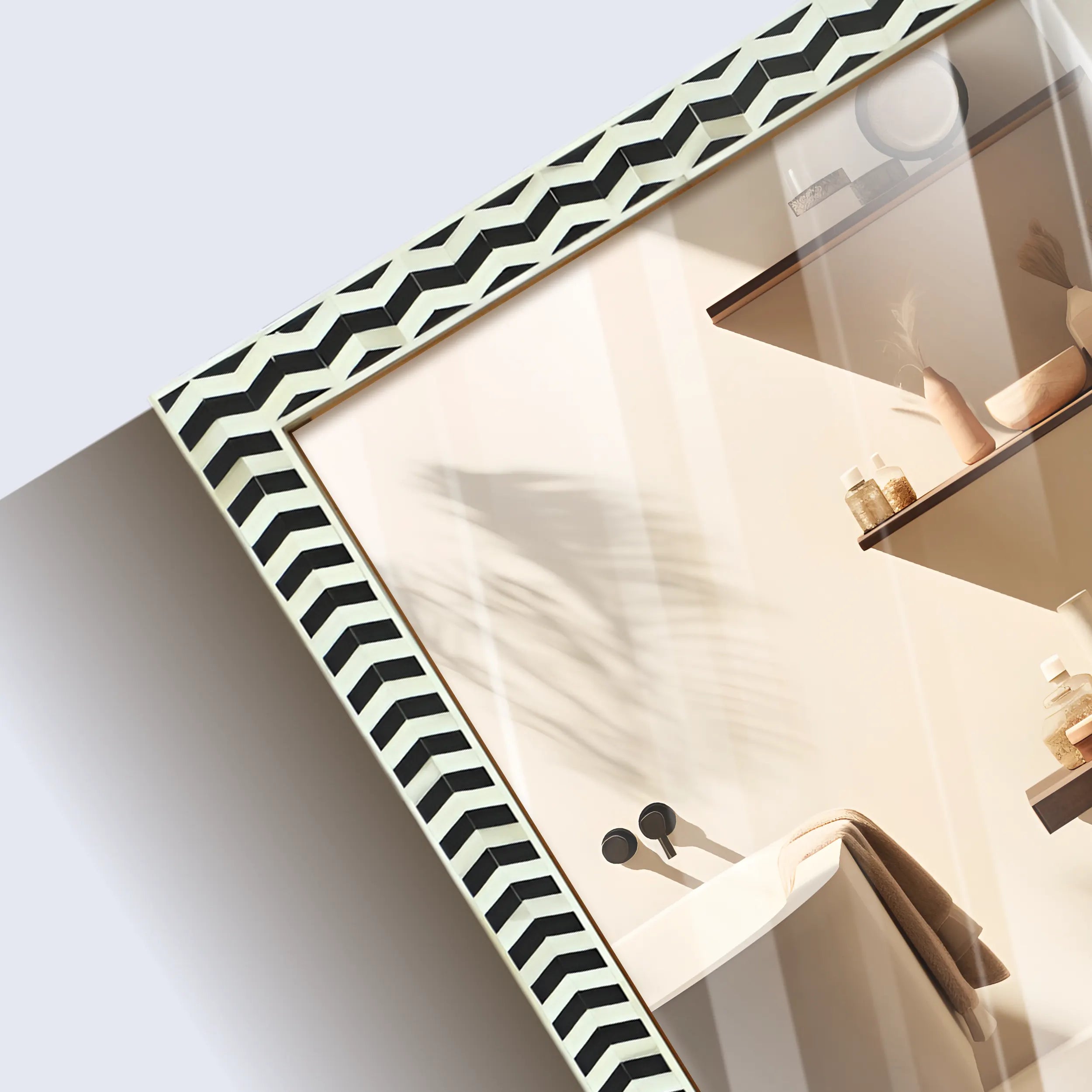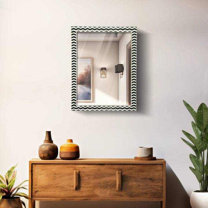 20"x16" Rectangular Mirror – Black White Herringbone MDF Frame