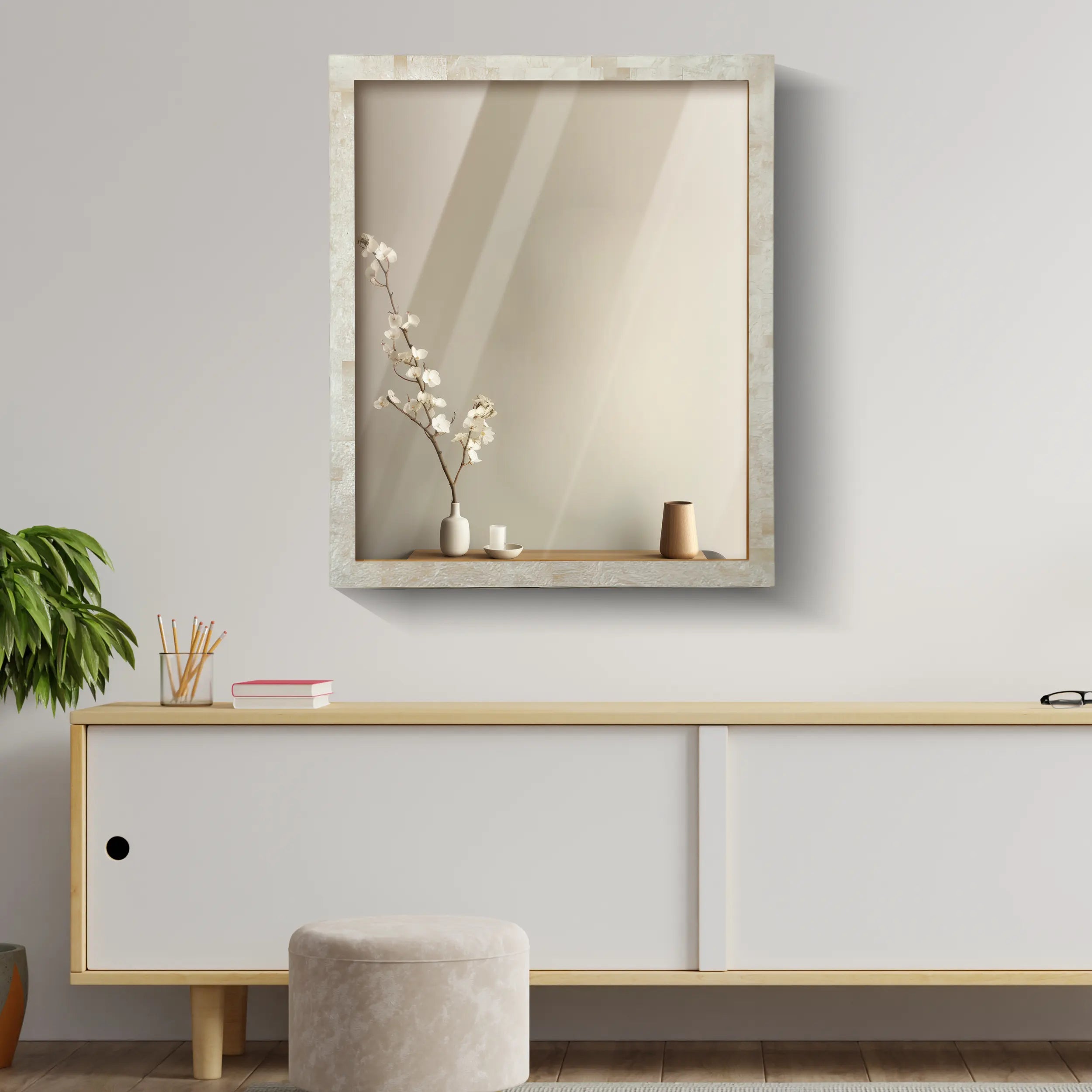 26x24 Rectangular Mirror Ivory Resin Inlay Frame