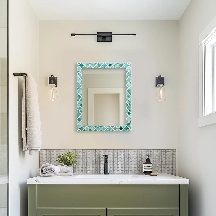 Make to Order Moroccan Green Mirror Bone & Resin Inlay Collection in 4 Sizes