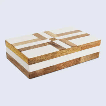 • Crafted by Artisans: Each box is meticulously made by Indian artisans, blending contemporary resin and natural wood inlay with a Pine MDF base for structure and support.