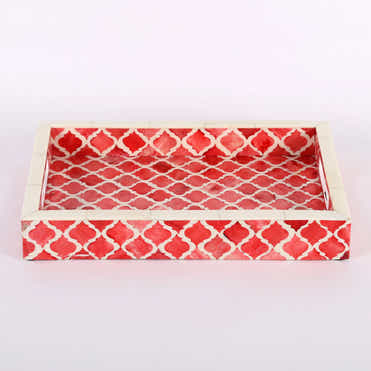Decorative Tray Moroccan Pattern Bone & Resin Inlay Collection in 3 Sizes, Red & White