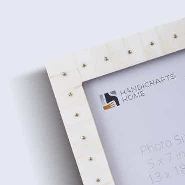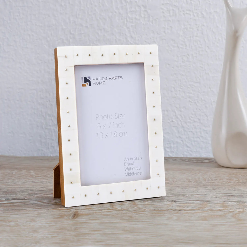 Handicrafts Home Bone & Brass Picture Frame – Handmade Noor Stud Pattern (4x6 & 5x7)