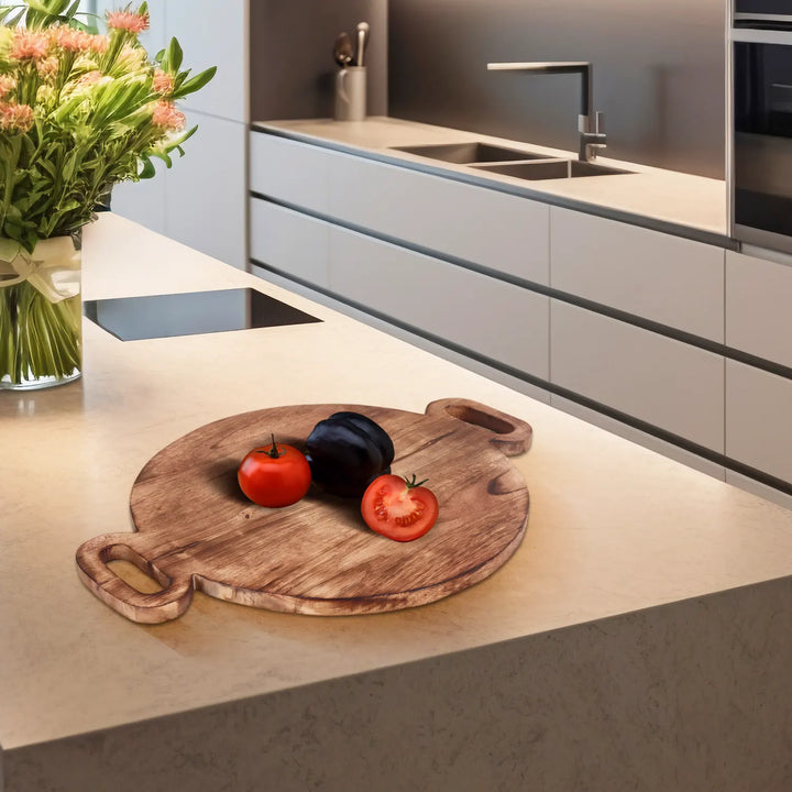 Chopping Board Round Paddle with Dual Handles – Mango Wood, in 16x12"