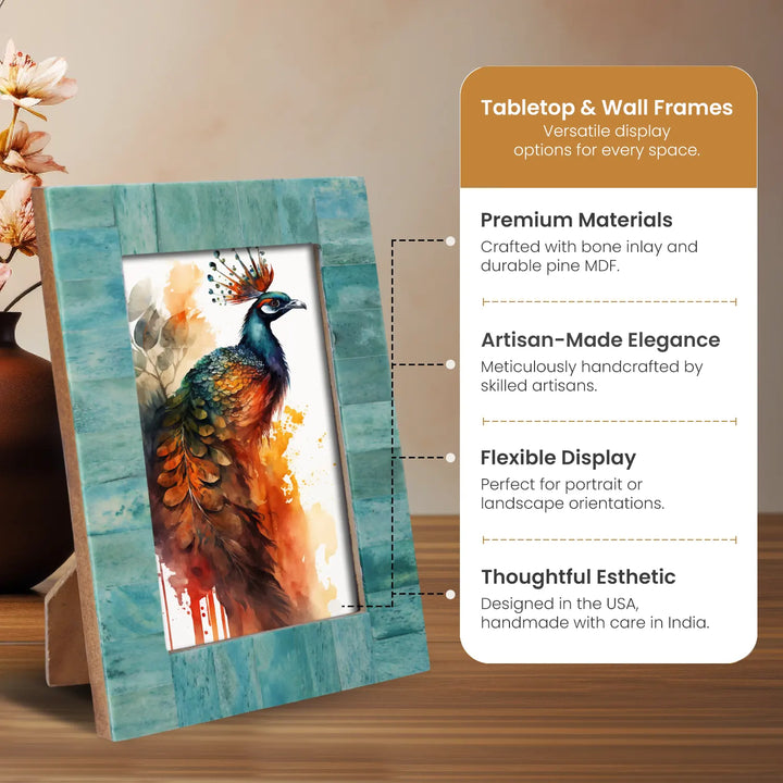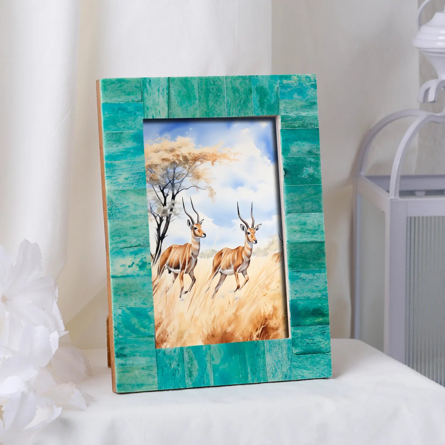 Classic Green Picture Frame- Bone Inlay & Wood in 4x6
