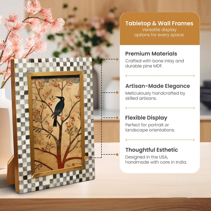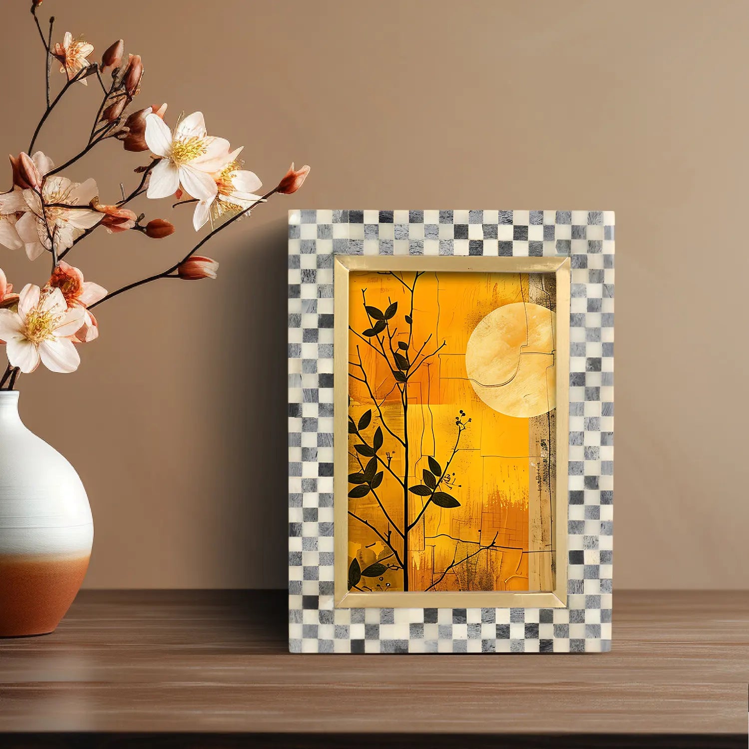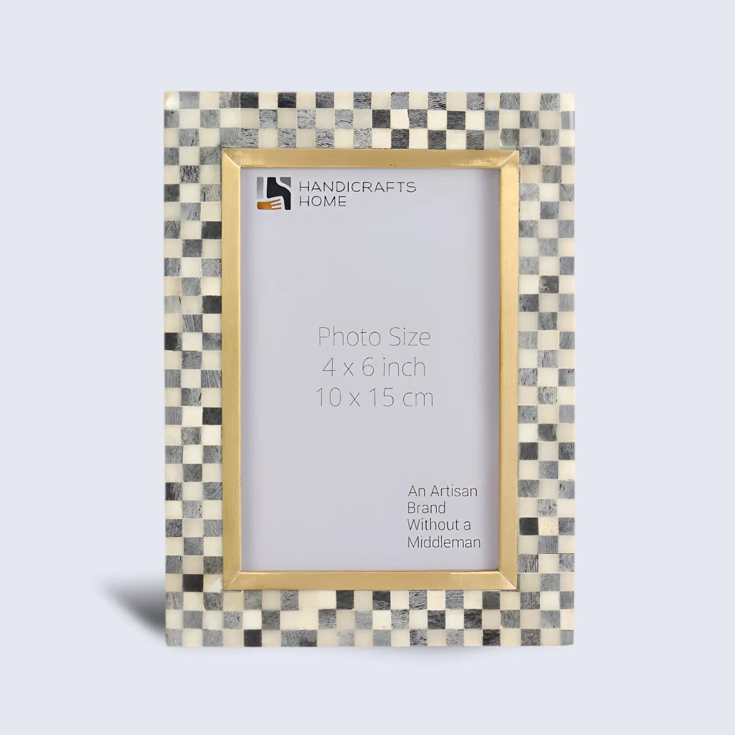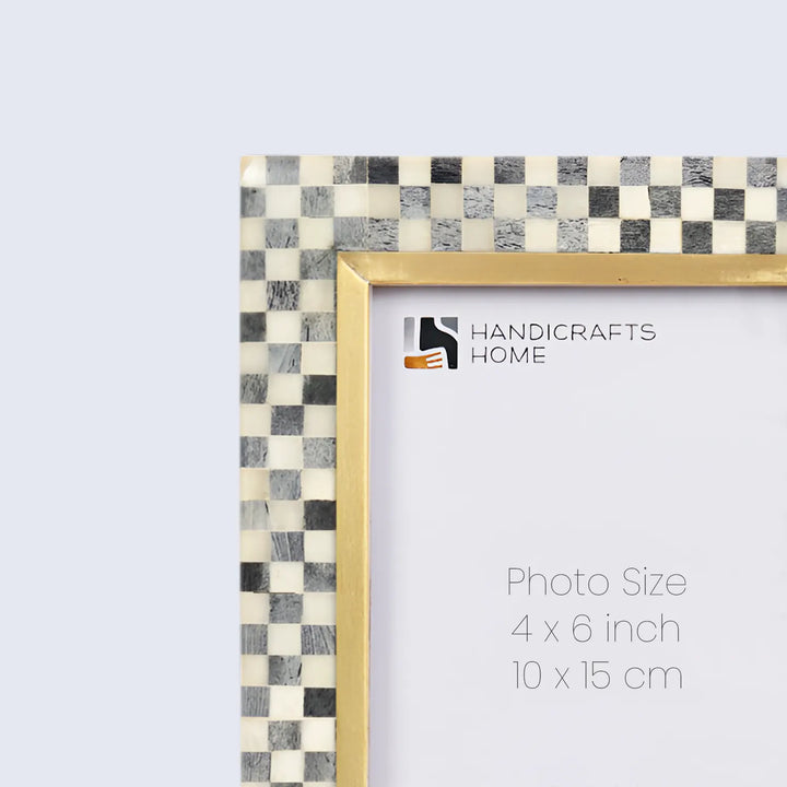 Bone Inlay & Brass Halo Pixels Pattern Picture Frame - 4x6