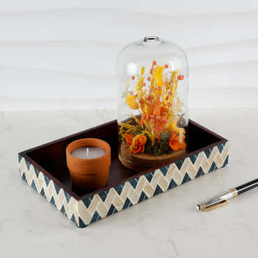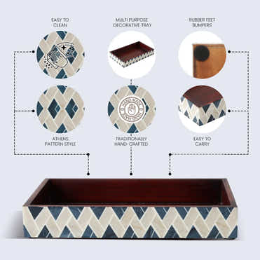 Introducing Handicrafts Home Handmade Tavla Pattern Towel Trays, the luxurious and functional countertop storage solution. Designed with an exquisite resin inlay on durable pine MDF, this bathroom countertop organizer blends elegance with practicality, making it an ideal vanity organizer, jewelry tray, or perfume organizer.