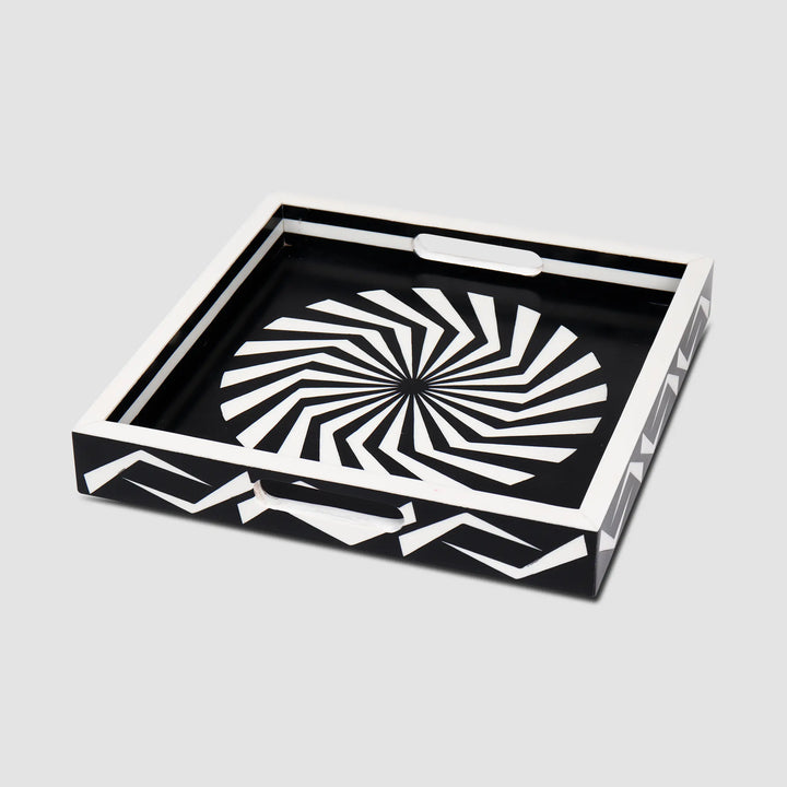 Decorative Tray Illusion Optic Pattern Resin Inlay Collection in 12x12, Black & White