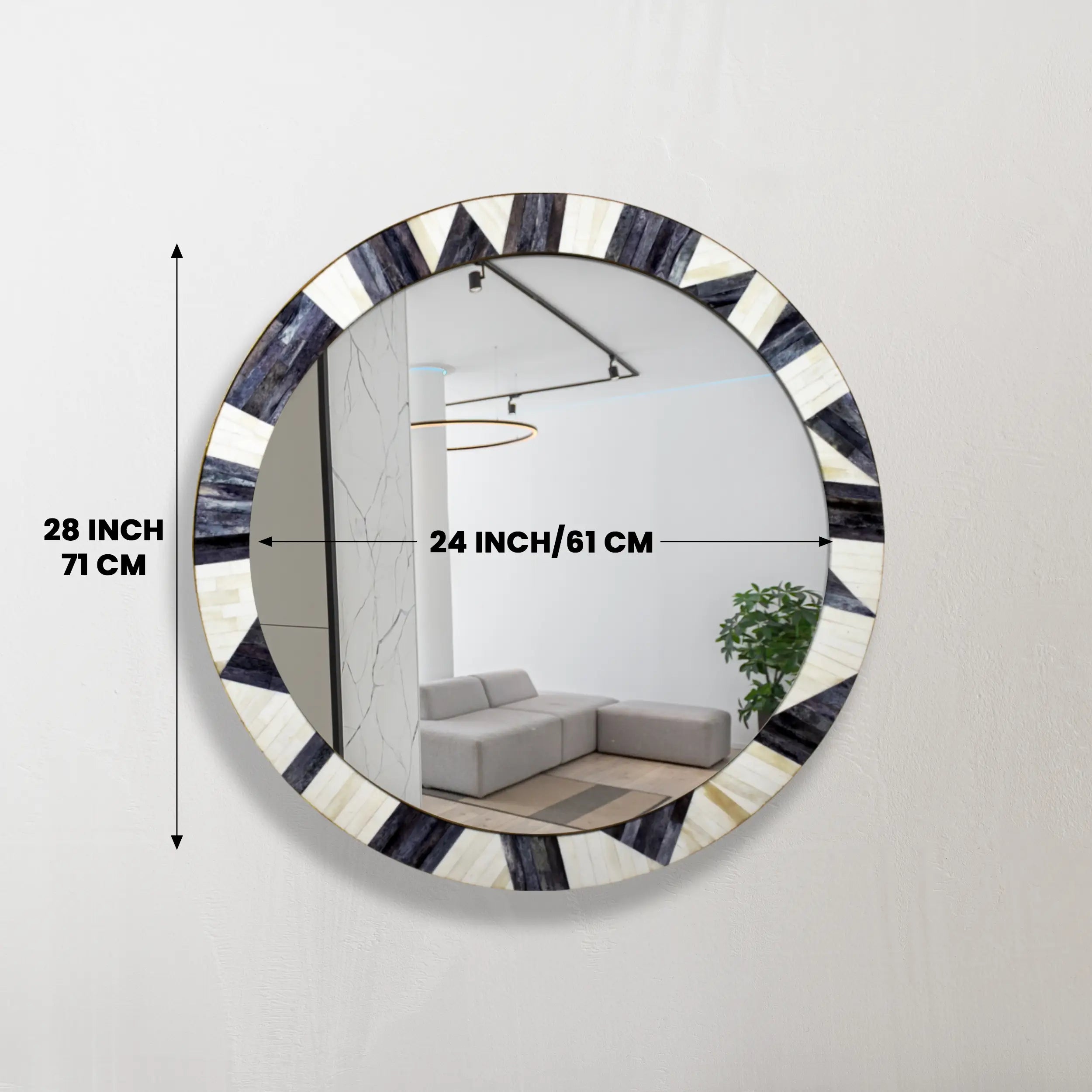 Bone Inlay Chaucer-Duchess Round Wall Mirror, 28" Collection, Charcoal Grey
