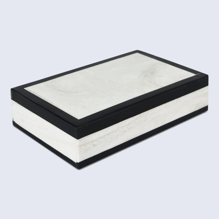 Mono Court Pattern Decorative Storage Box, Resin Inlay in 7 Sizes, Black-White