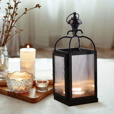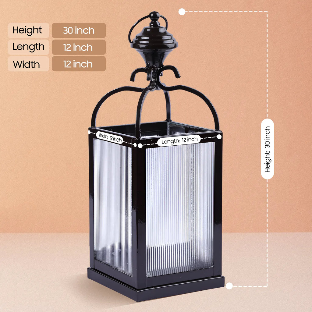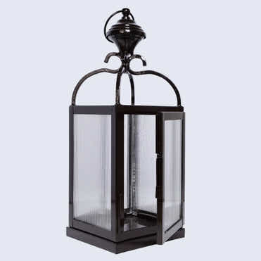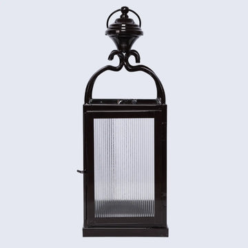 Dome Top Iron Lantern with Ribbed Glass – Vintage Elegance