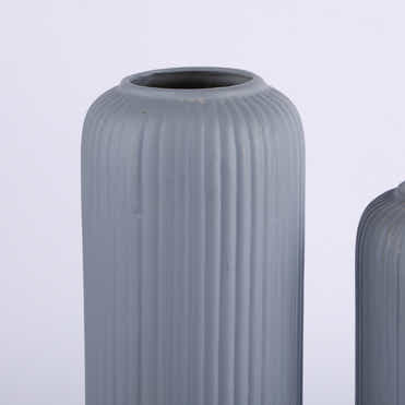 Transform your space with the calming hues of this grey ceramic vase trio from Handicrafts Home. Each vase features a vertically stripped pattern with matte finish for a natural tactile feel and timeless style. Measuring 3.5x6.25”, 4x8.5", and 4x10.5", this set is ideal for layered decor—whether styled together or separately across your home.