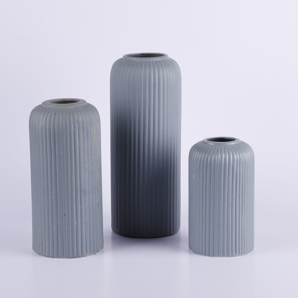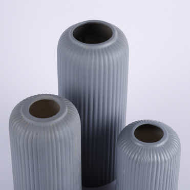 Ceramic Vase Set of 3 – Grey Stripped Pattern Decorative Flower Vases