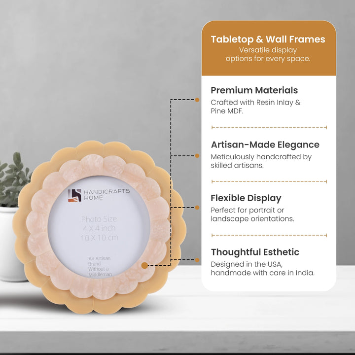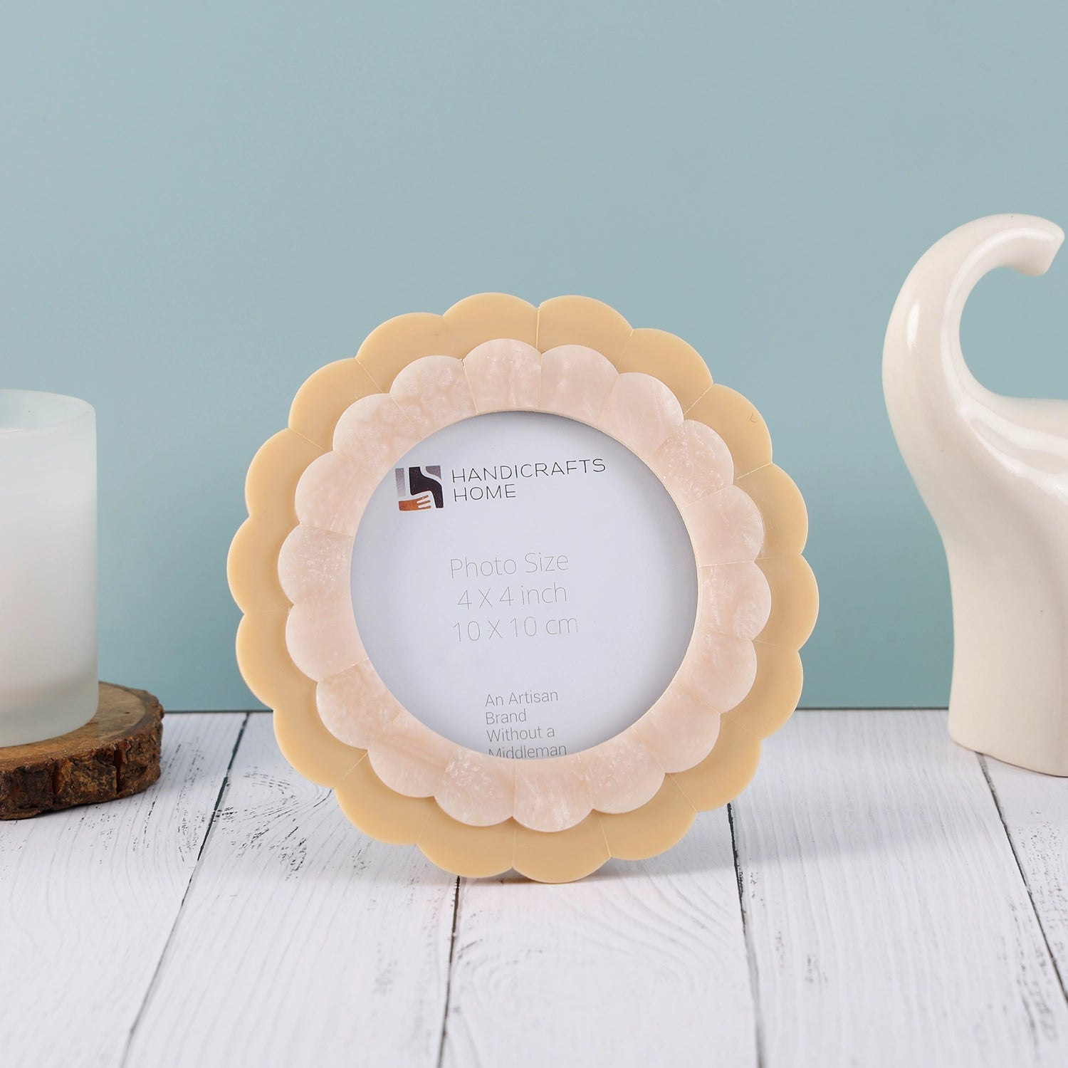 4x4” Baby Picture Frame – Scalloped Latte Shell Resin Inlay Collection