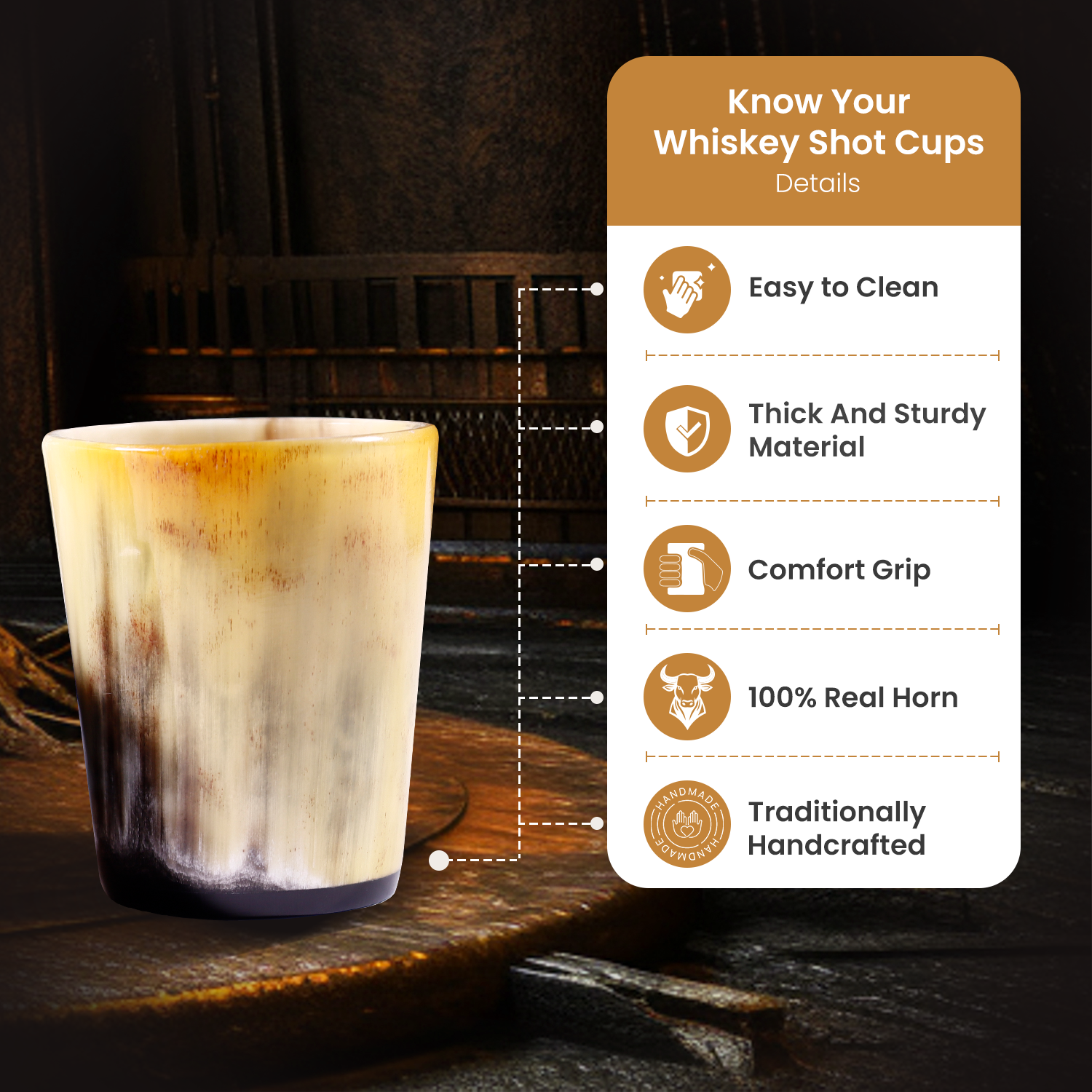 Premium Craftsmanship – Leakproof & Safe – Unlike standard glass shot glasses, our horn shot cups are sealed with a food-grade lacquer, making them safe for use and long-lasting.
