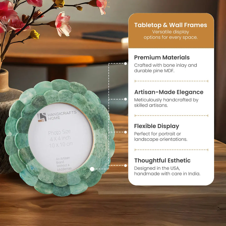 Baby Picture Frame Scallop 4x4 Picture Frames Resin Inlay Collection, Green