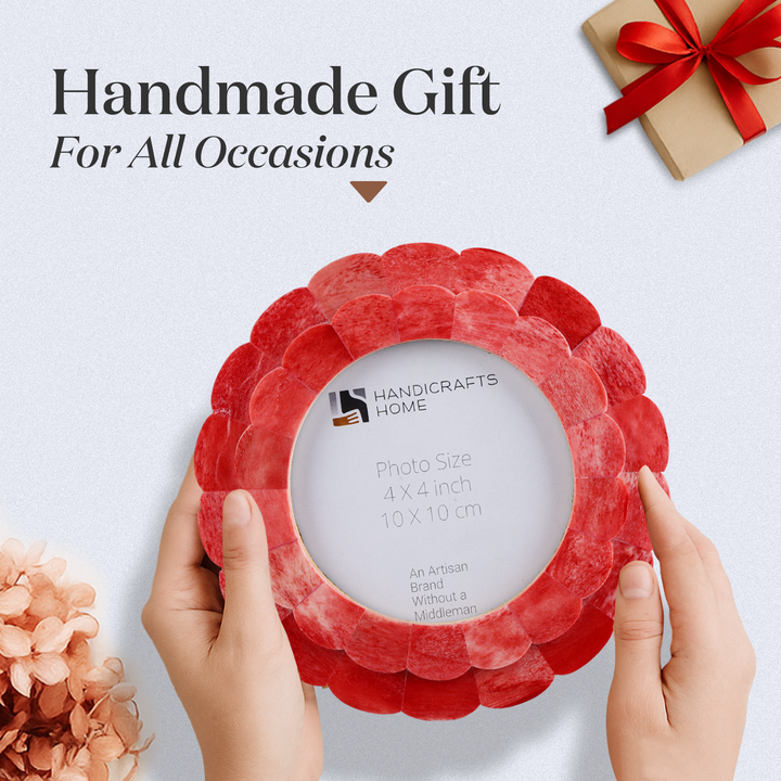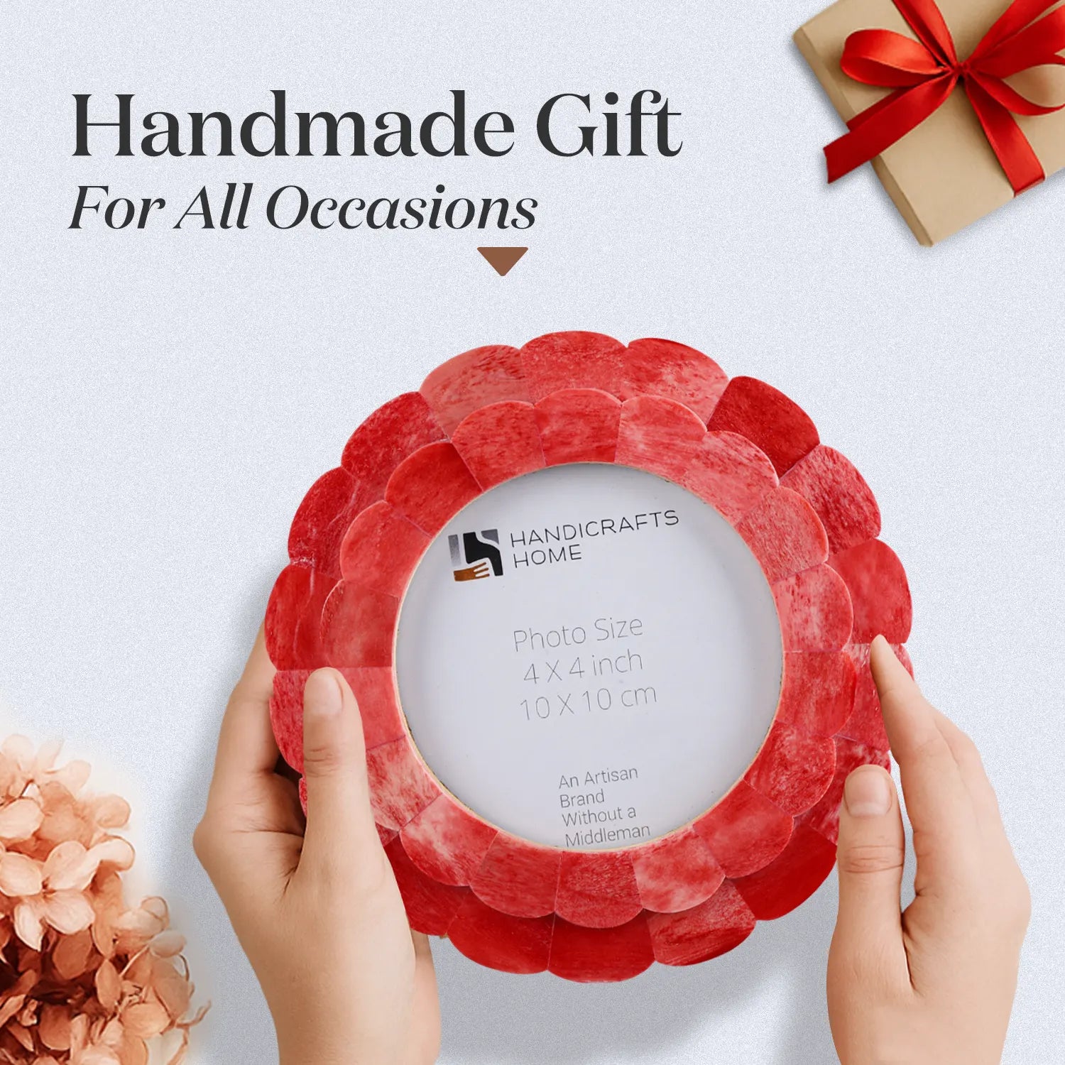 Baby Picture Frame Scallop 4x4 Picture Frames Resin Inlay Collection, Red