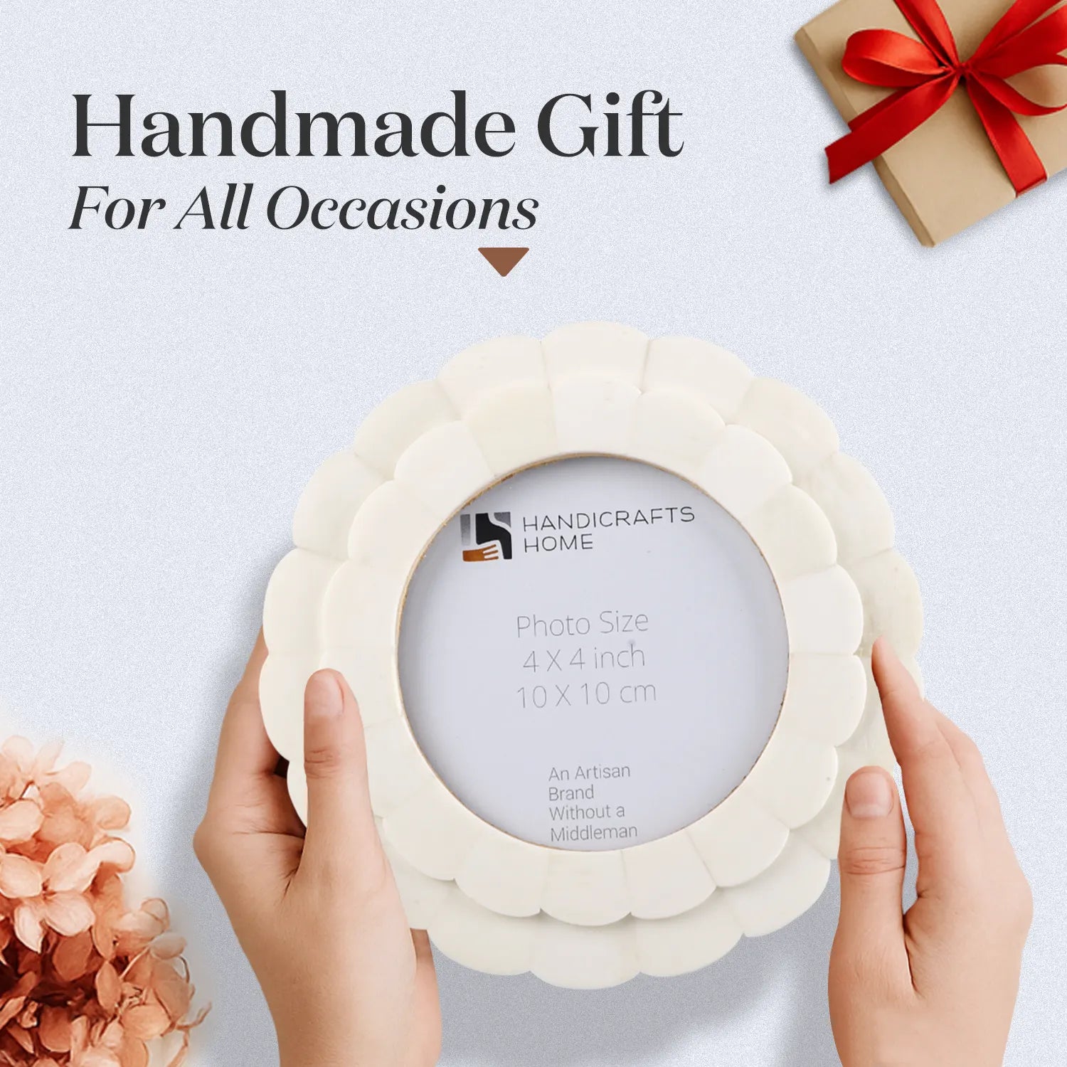 Baby Picture Frame Scallop 4x4 Picture Frames Resin Inlay Collection, White
