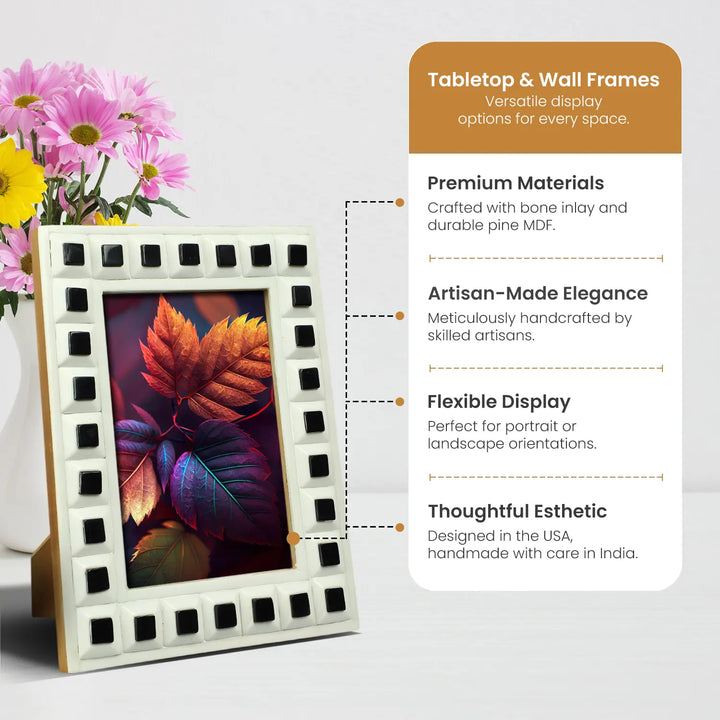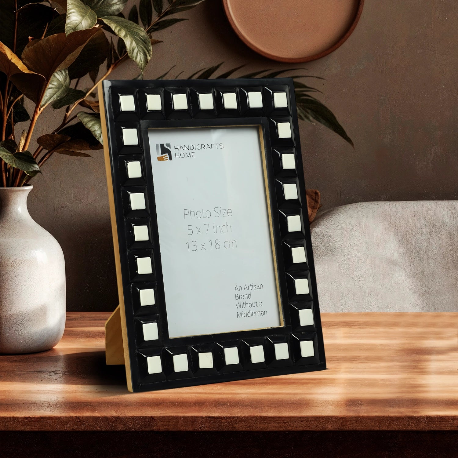 Black & White Square Resin Inlay Photo Frame - 5x7