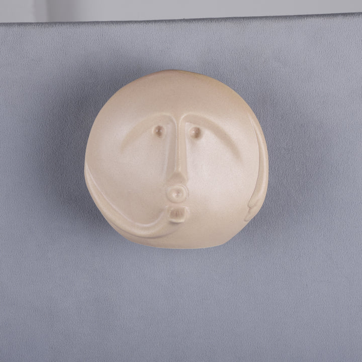 Ceramic Vase Set of 2- Noirstaq Face Pattern in Beige & White Matte