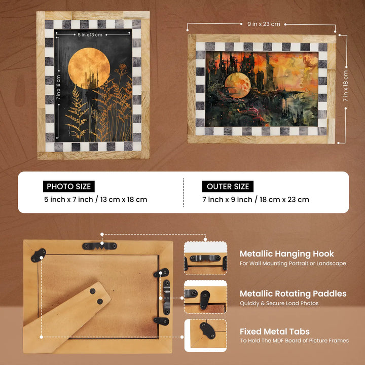 Crafted with Purpose & Precision: Each frame is handmade using bone inlay, wood, and Pine MDF—materials chosen for both beauty and durability. The intricate checkered pattern brings structure and style to your photo collection, while the smooth wooden edges add a grounding, natural touch.